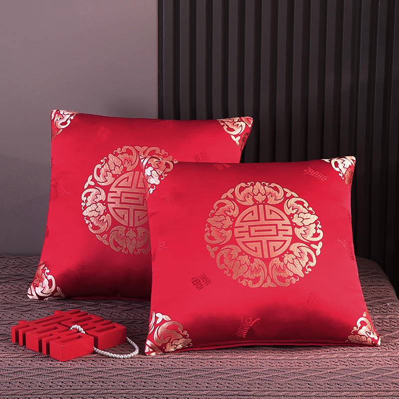 (总)贤内助家纺 2026大红锦缎高精密提花/结婚抱枕/沙发婚床摆件抱枕/生日宴福寿抱枕