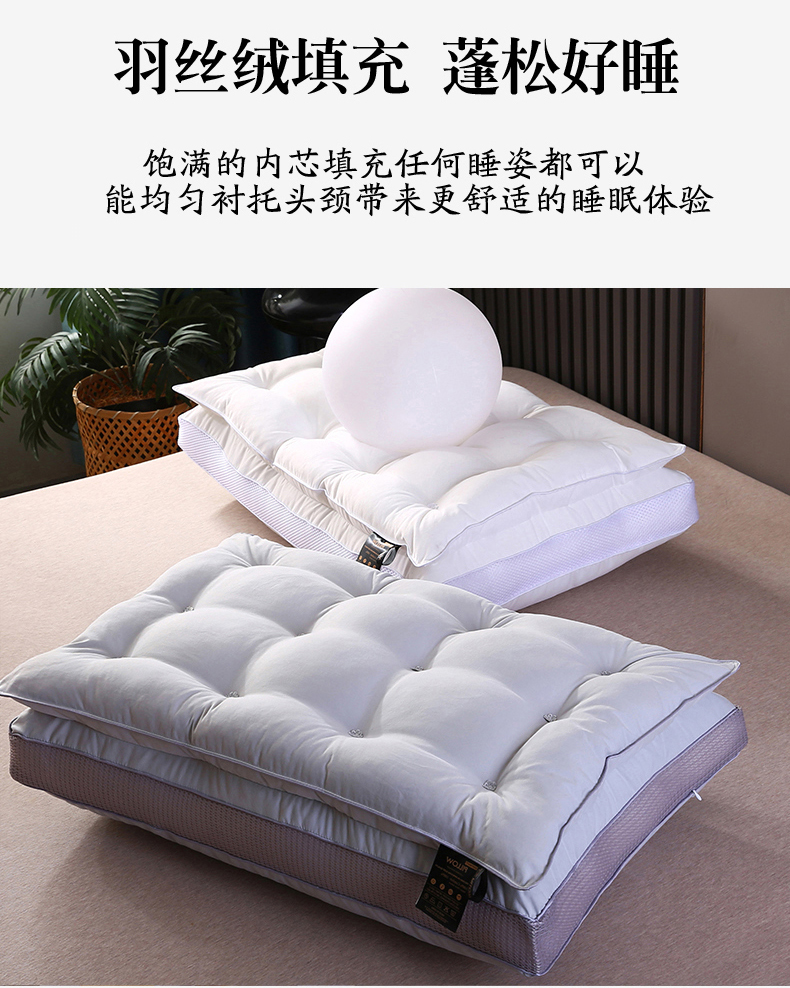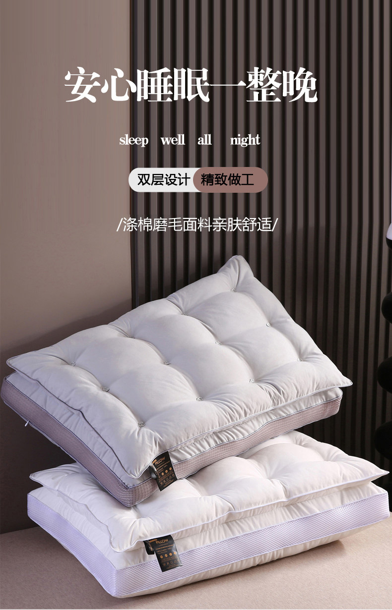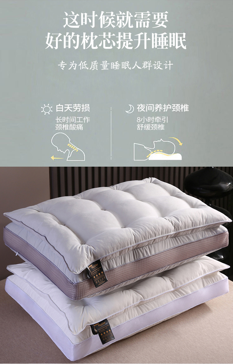 (总)贤内助家纺 2026超柔亲肤羊绒蛋白学生宿舍枕头/学生护颈枕,羊绒蛋白枕蓬松中高枕13公分,羊绒蛋白枕定型低枕6公分