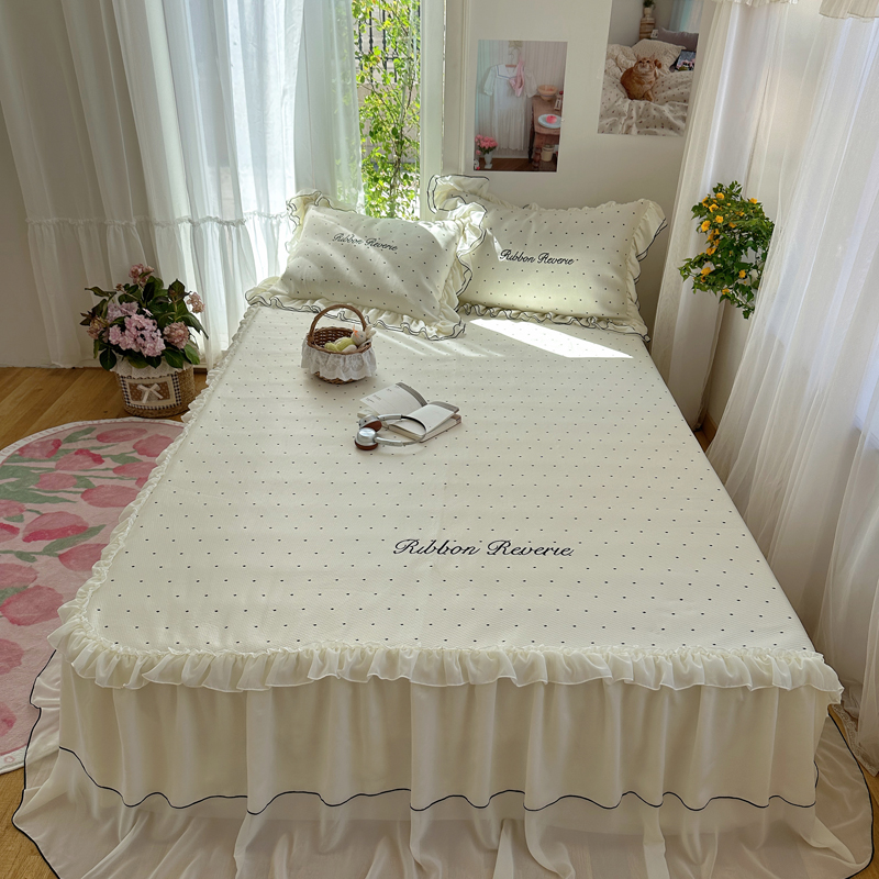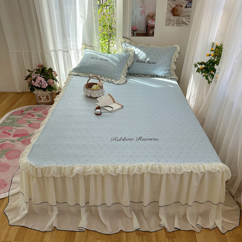 (总)觅糖家纺 2026新款缎带梦境韩风ins床裙款凉席系列凉席席子-波点奶芙,波点奶芙-白,波点奶芙-粉,波点奶芙-咖,波点奶芙-蓝
