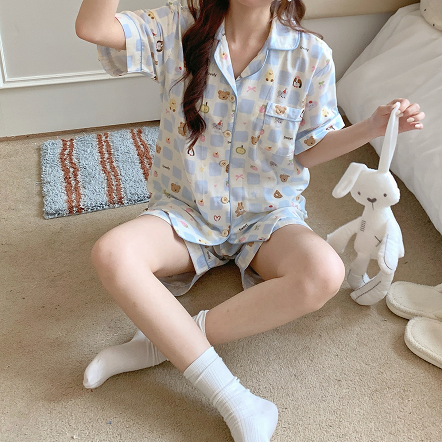 商品名称:爱思佳 2026新款全棉纯棉双层纱短袖睡衣系列 嘟嘟熊