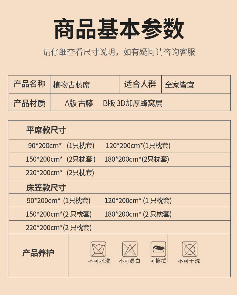 商品名称:(总)可恩欣 2026新款全新A类第6代植物凉感古藤席-静心
