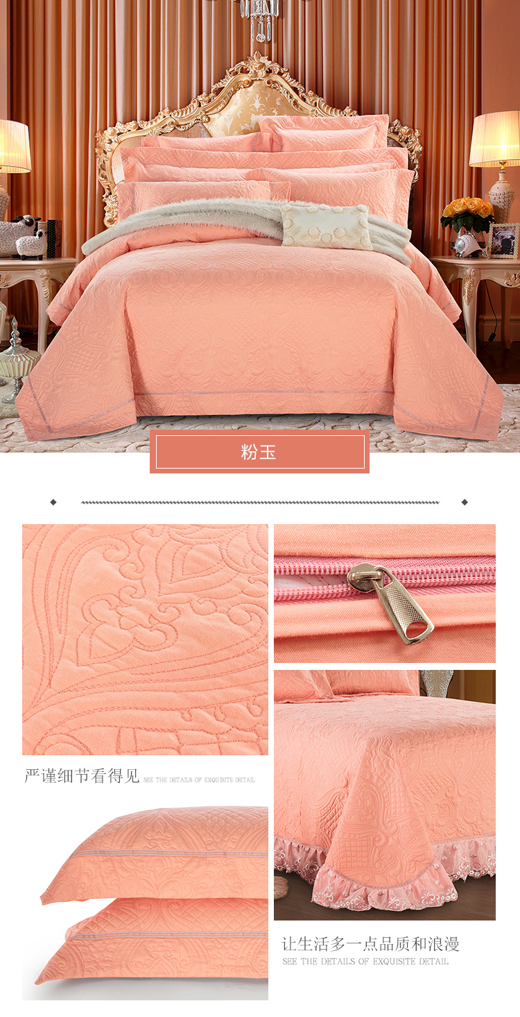 商品名称:OL2020年13375喷气全绵欧式行绣床盖加厚三四六七多件套粉玉