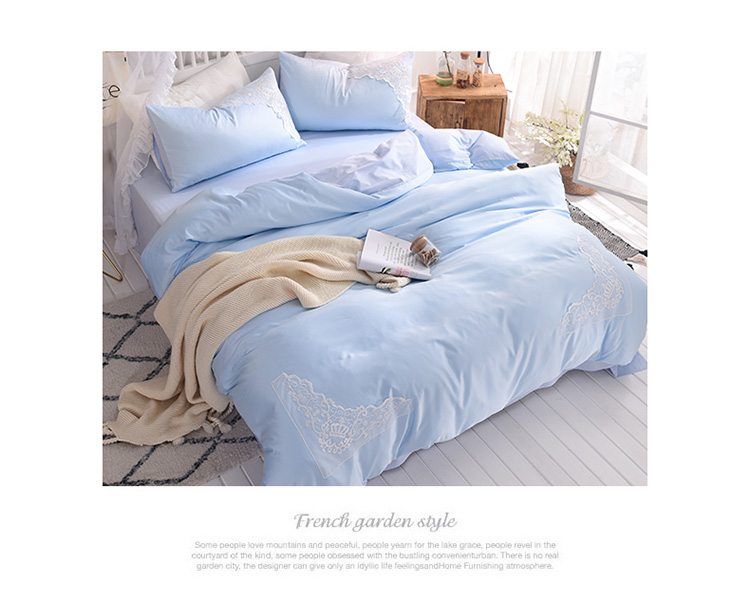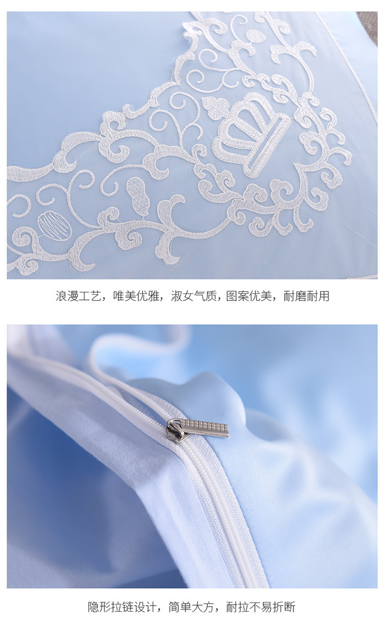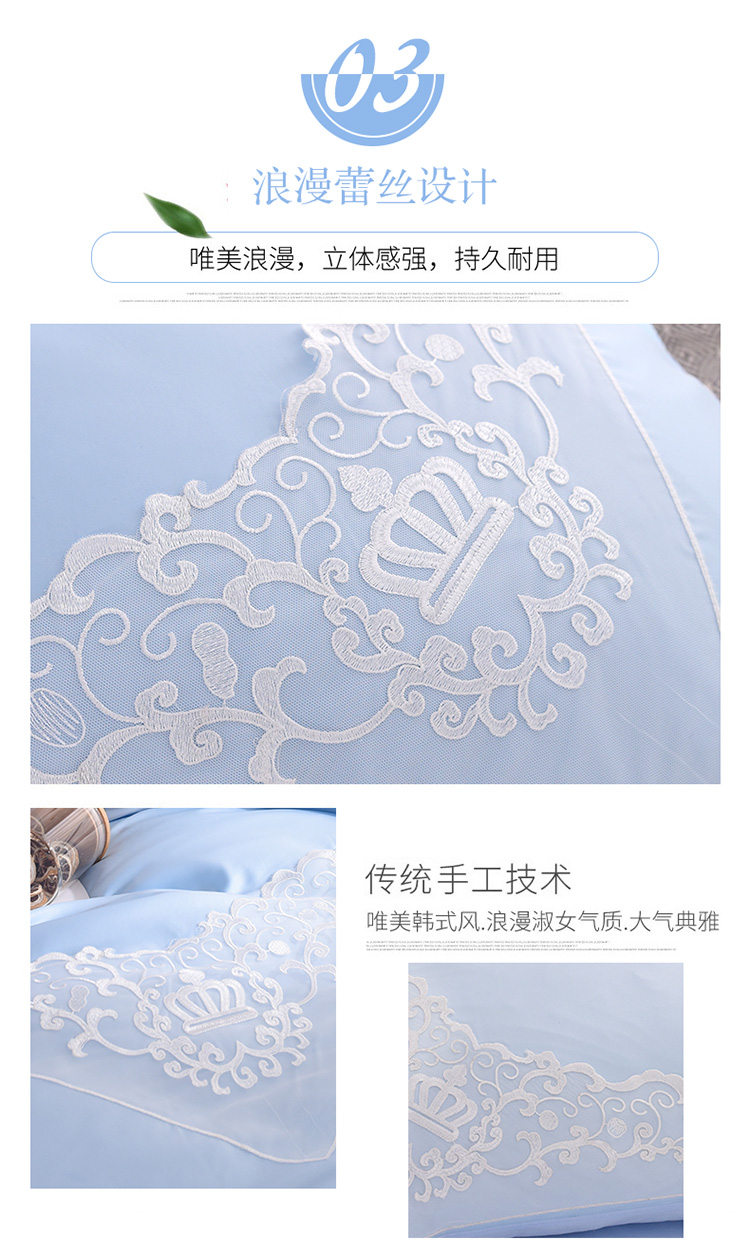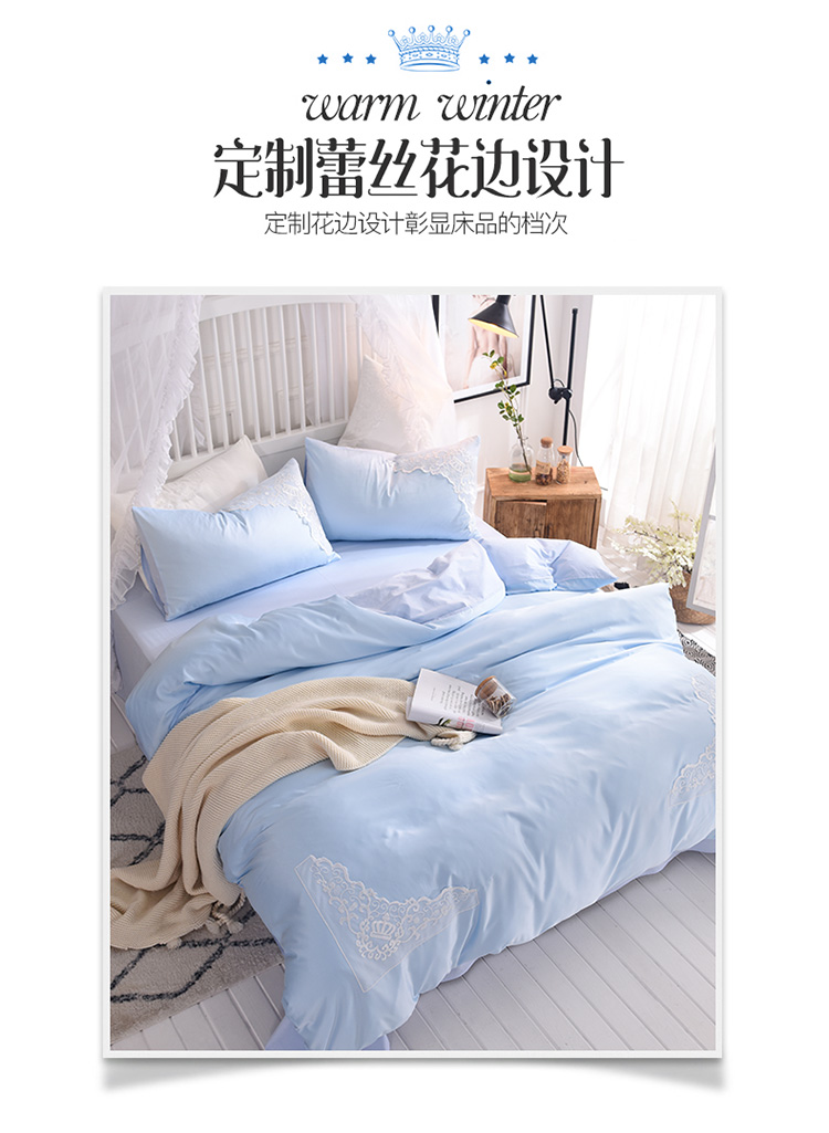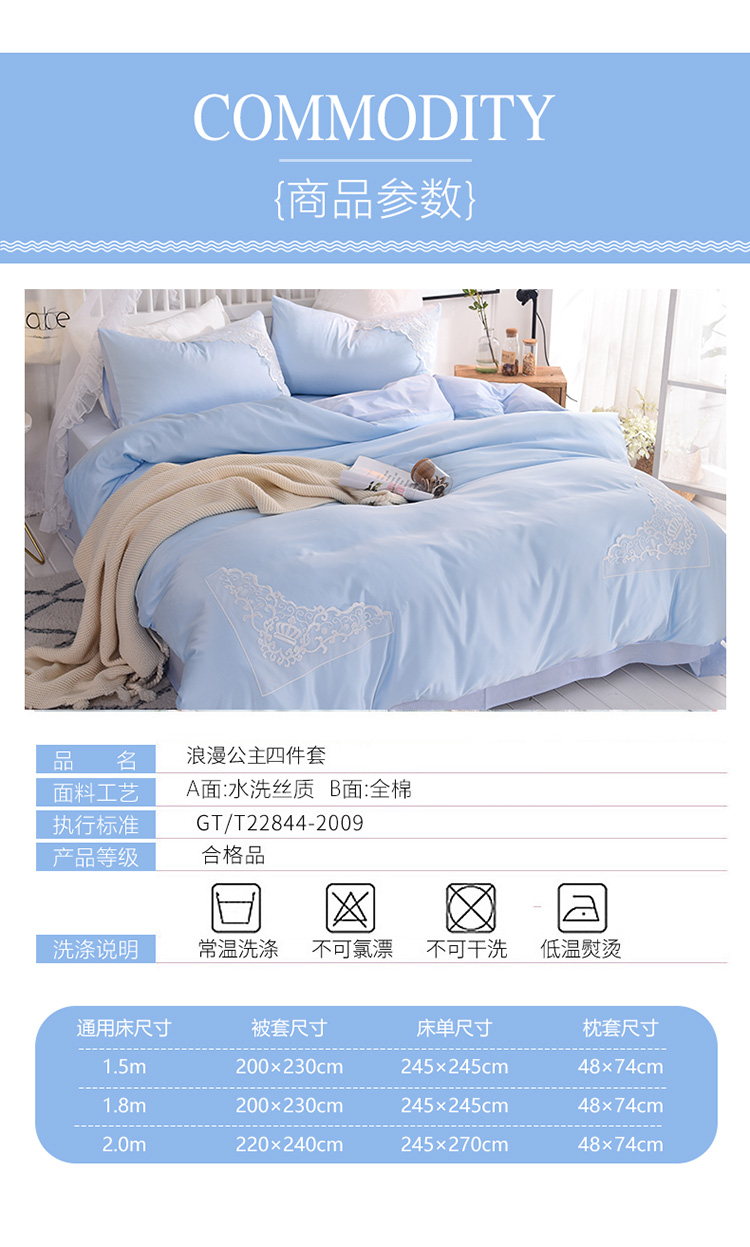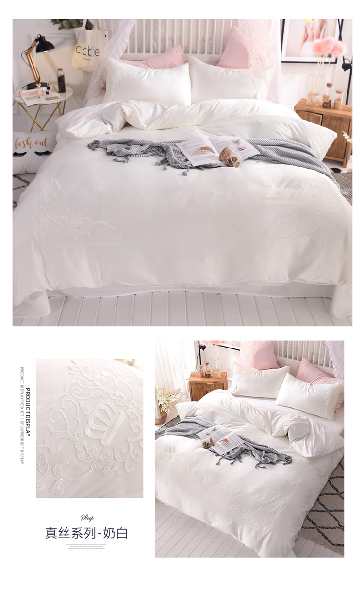 总艾米家居2025新款水洗真丝雪纺花边贴布绣四件套-达菲小熊,白色,薄荷绿,宾利蓝,淡粉,豆沙,鹅黄,灰色,天蓝,香槟,玉色