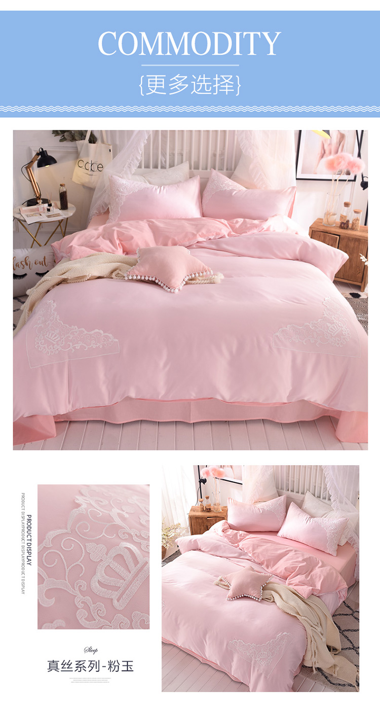 艾米家居 2025新款韩版双层花边轻奢浮雕系列水洗冰丝四件套 粉花边,粉花边