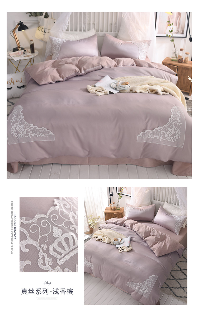艾米家居 2025新款韩版双层花边轻奢浮雕系列水洗冰丝四件套 豆沙花边,豆沙花边