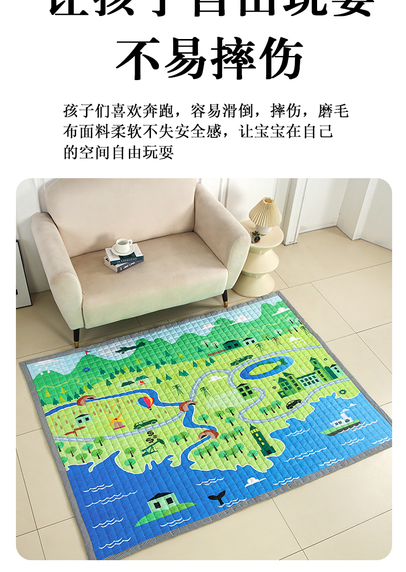 (总)沁童家纺 北欧风长方形加厚地垫儿童爬爬垫