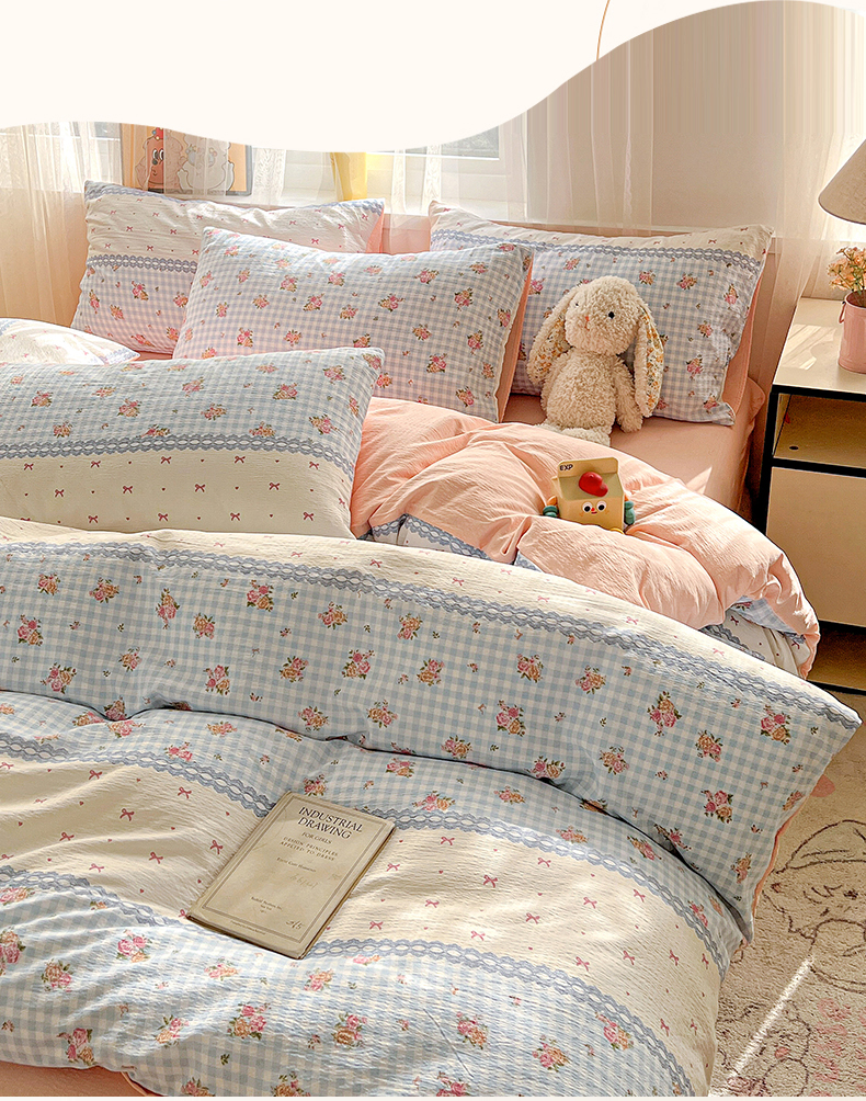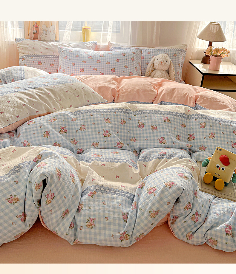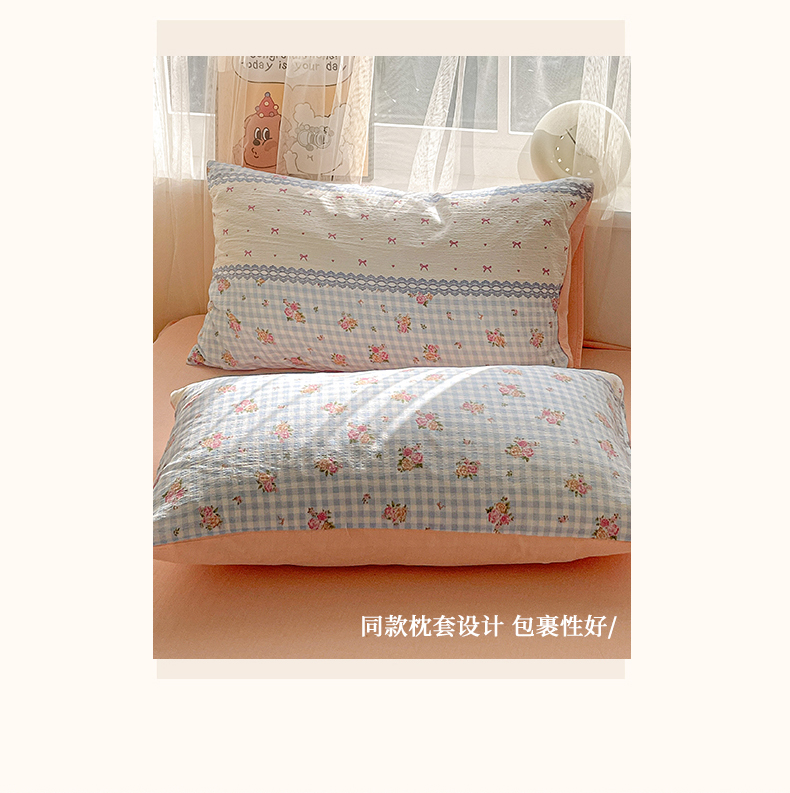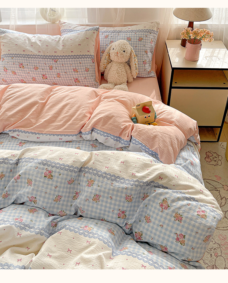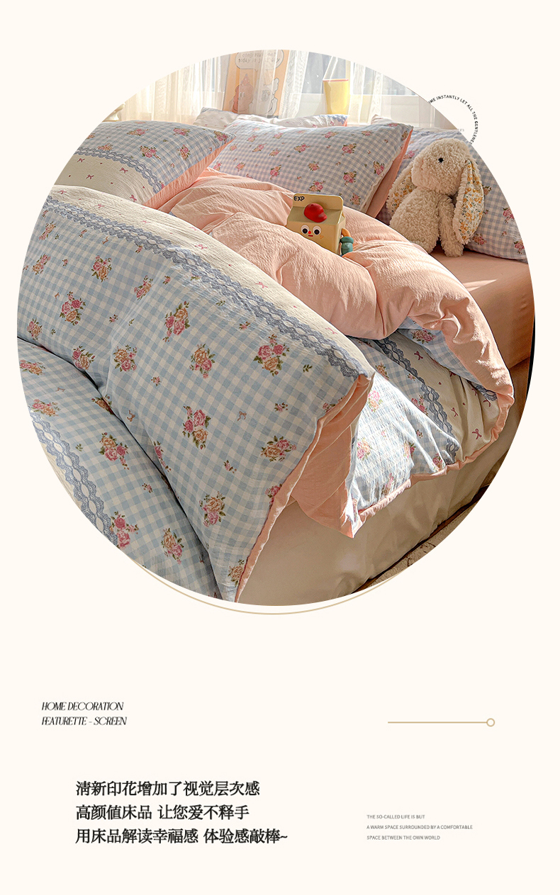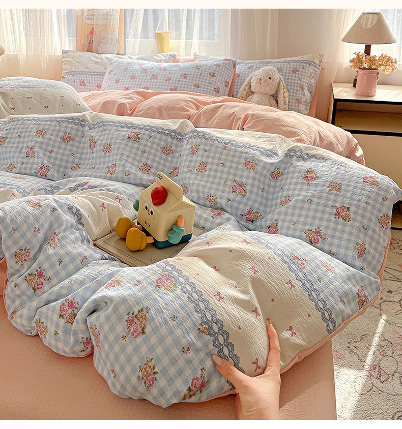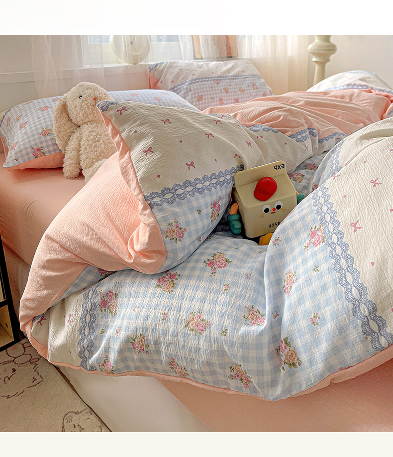 (总)灿哈家纺 2025新款A类水洗棉双层纱皱皱棉蕾丝花边四件套,宾利蓝,公主玉,海水蓝,卡其咖,玫瑰红,柠檬黄,葡萄紫,清脆绿,胭脂玉,樱花粉,樱桃玉