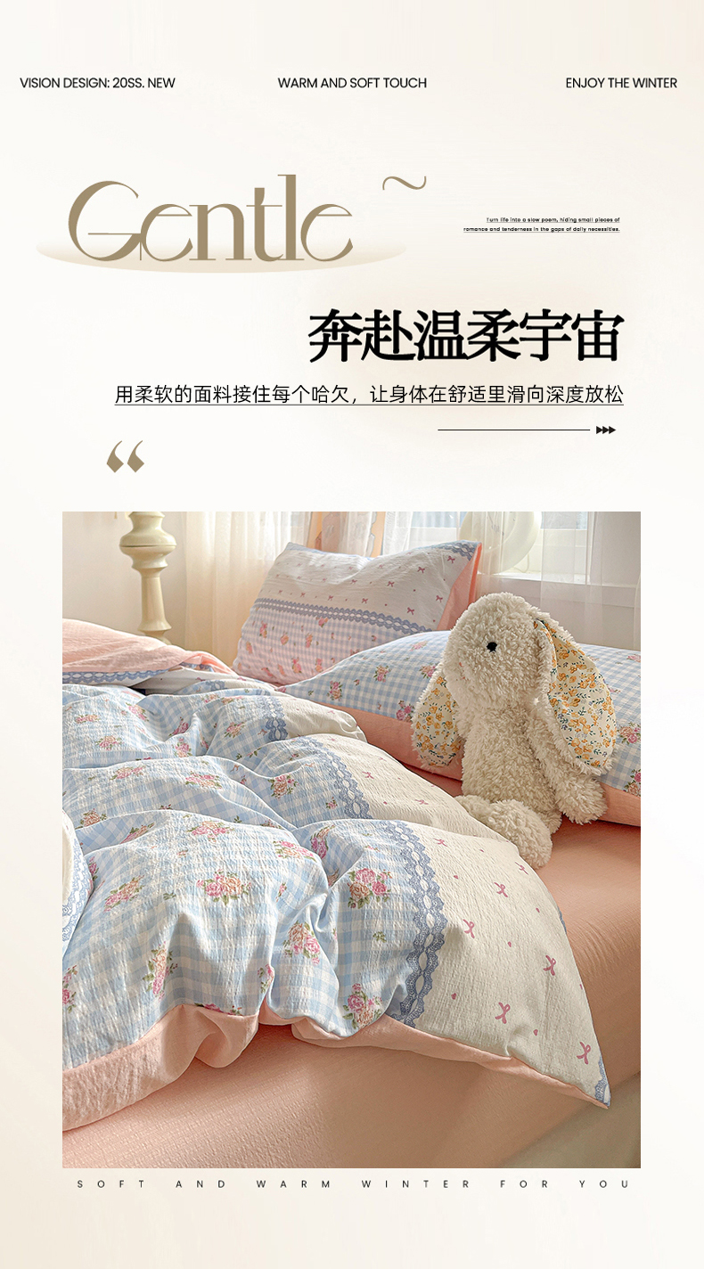 (总)灿禾家纺(原灿哈家纺) 2026新款<小布袋同款面料>古法水洗棉仿棉高克重云柔棉四件套,甜粉花串,草莓派,粉色小兔,几何兔,咖啡猫,快乐旺,浪漫时刻,满天星,奶芙熊、,森林兔,森野小熊、,小暖狗,小兔兔蓝,小熊贝贝,小雪人,星星狗,樱你而甜,樱桃小狗,清芬雅眠,月兔伴眠