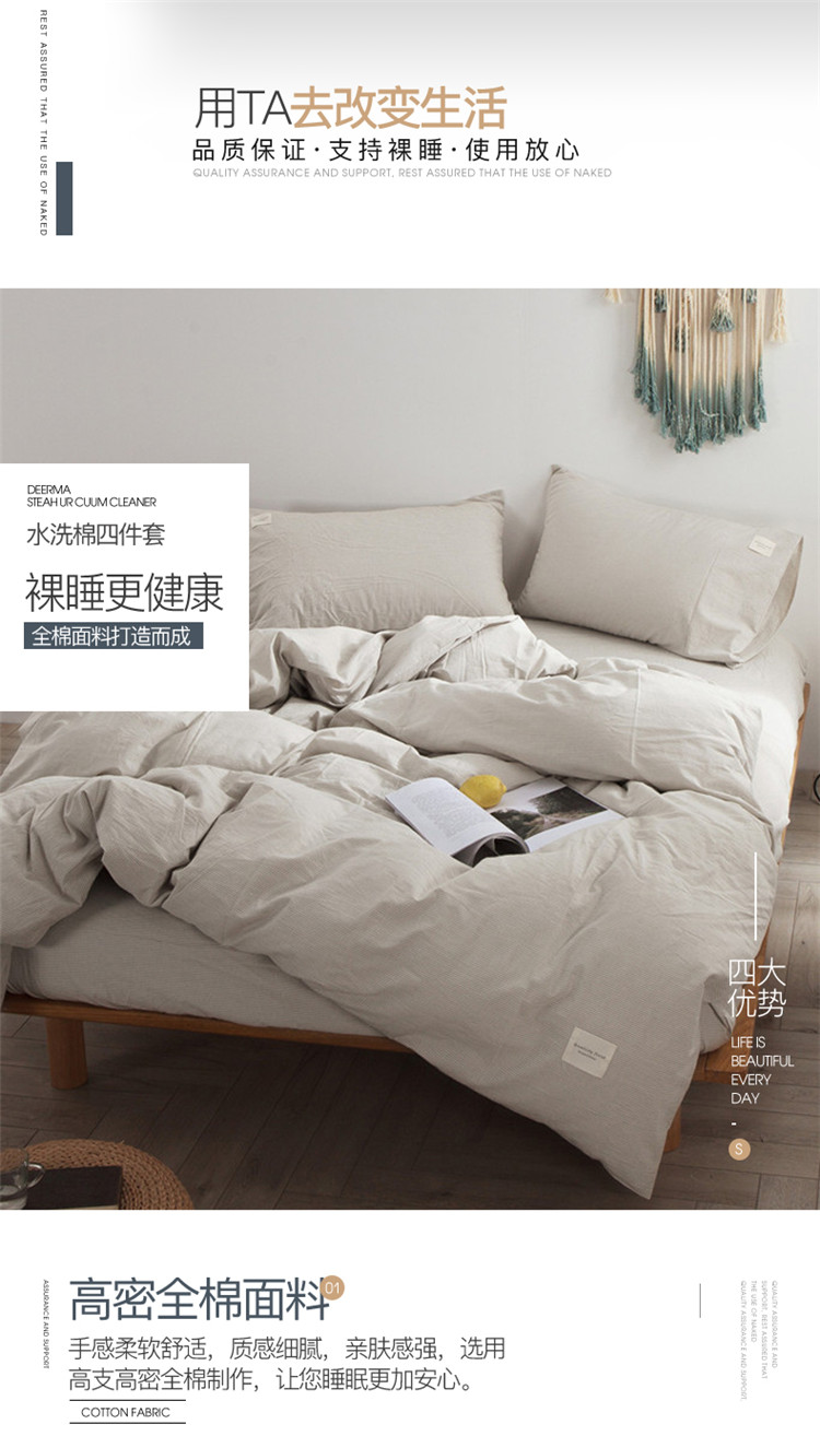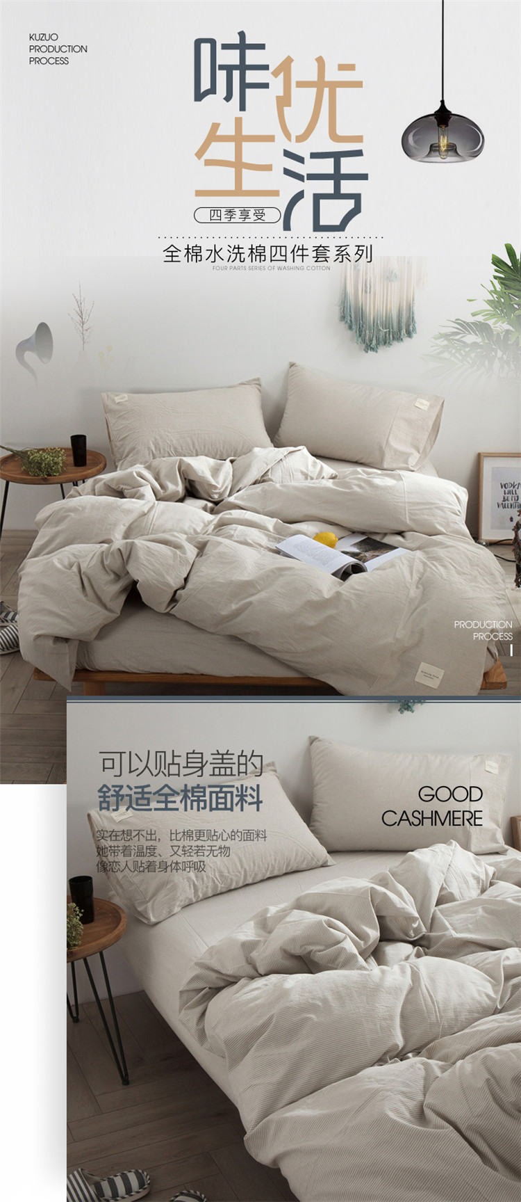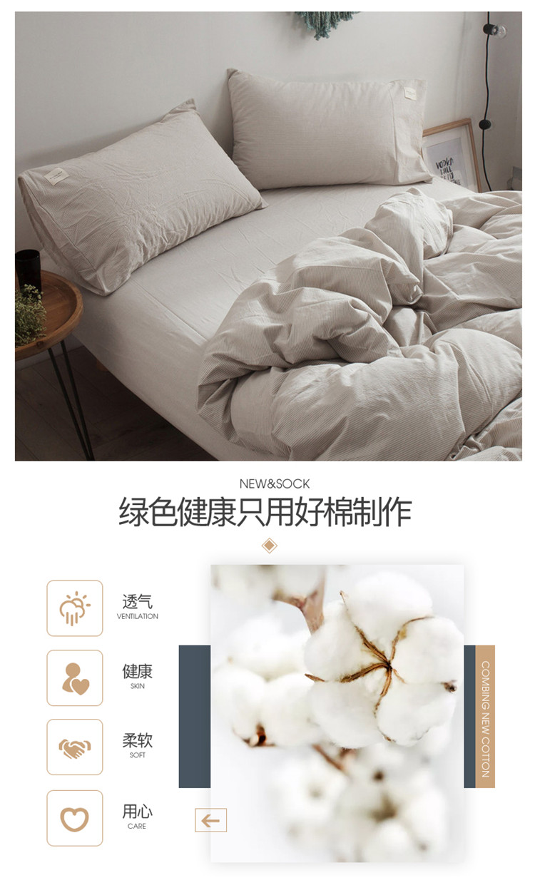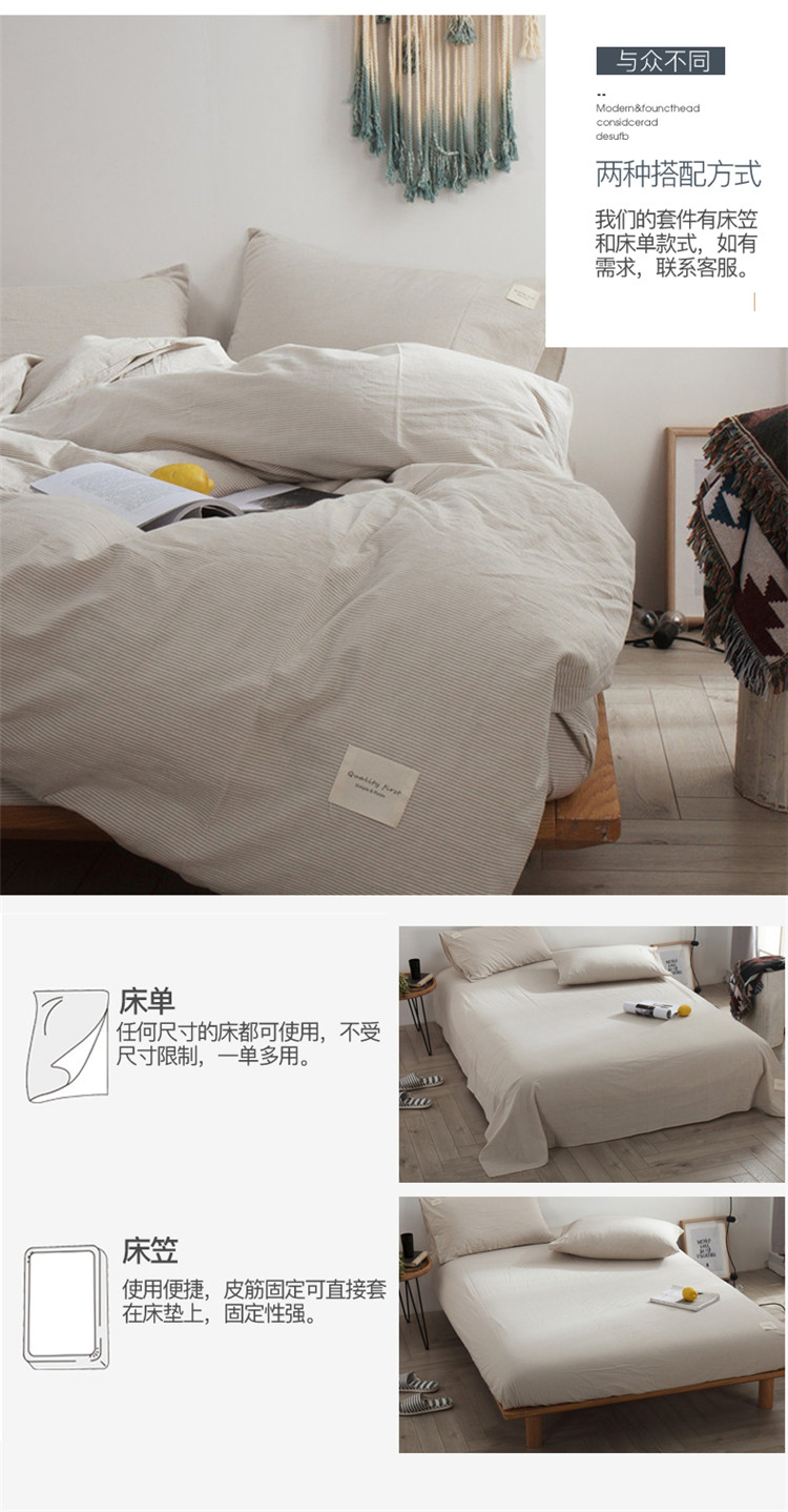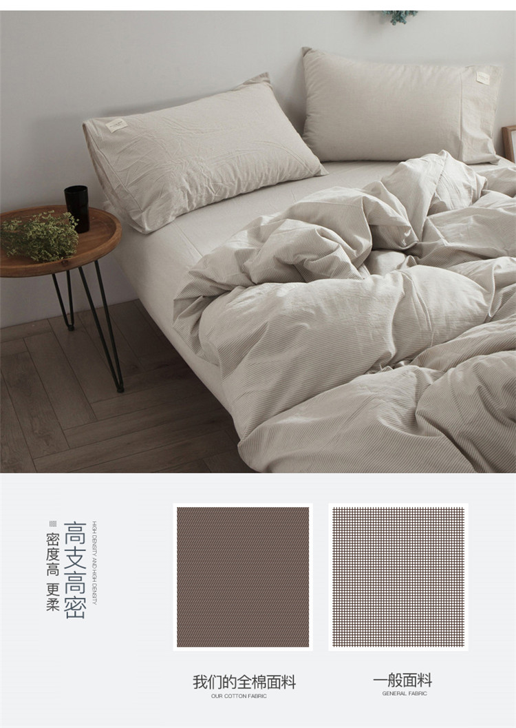 瑞驰家纺 全棉水洗棉四件套床单款 素麻条