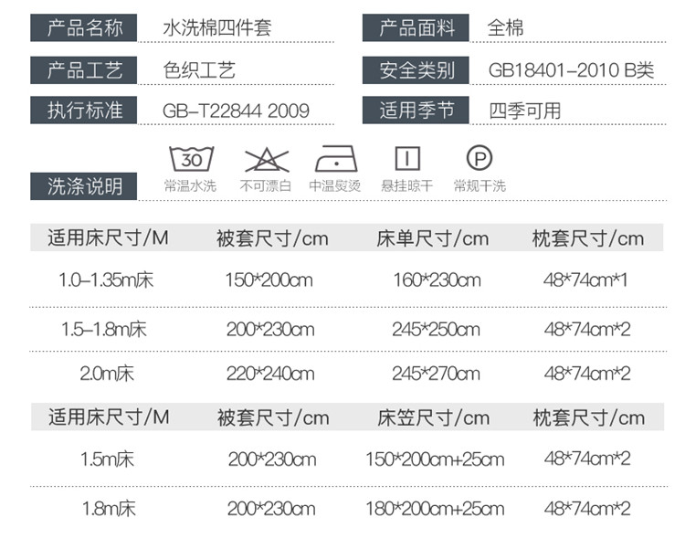 商品名称:瑞驰家纺 全棉水洗棉四件套床单款 素麻条