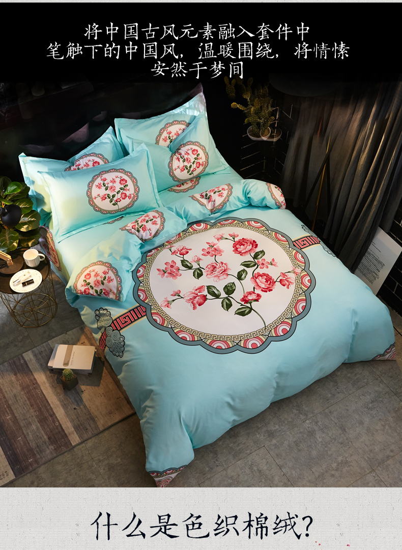商品名称:新品卡伦家纺 2018新款爆款棉绒大版印花四件套