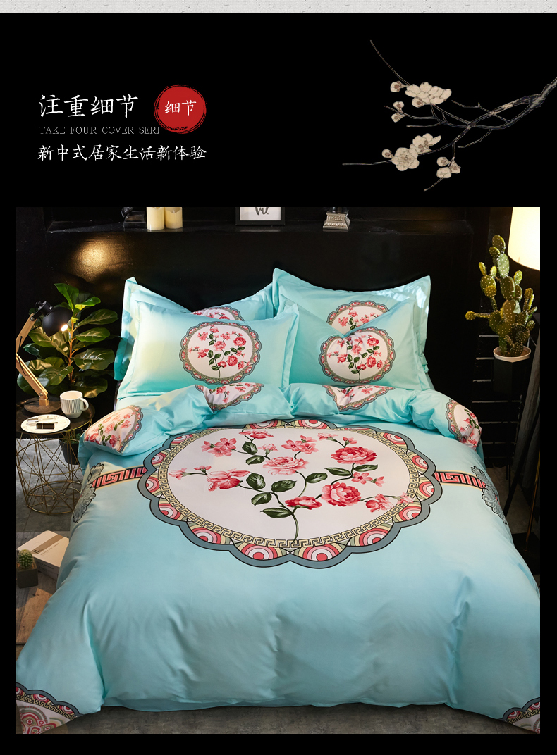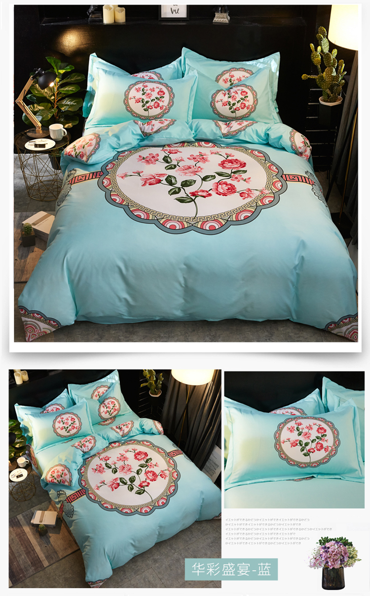 新品卡伦家纺 2018新款爆款棉绒大版印花四件套