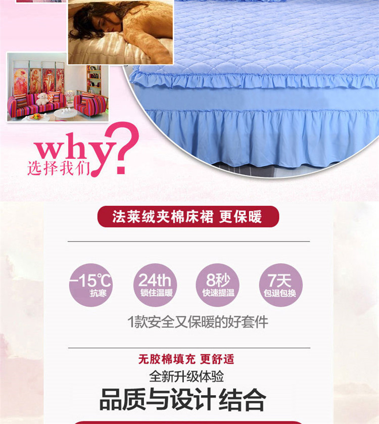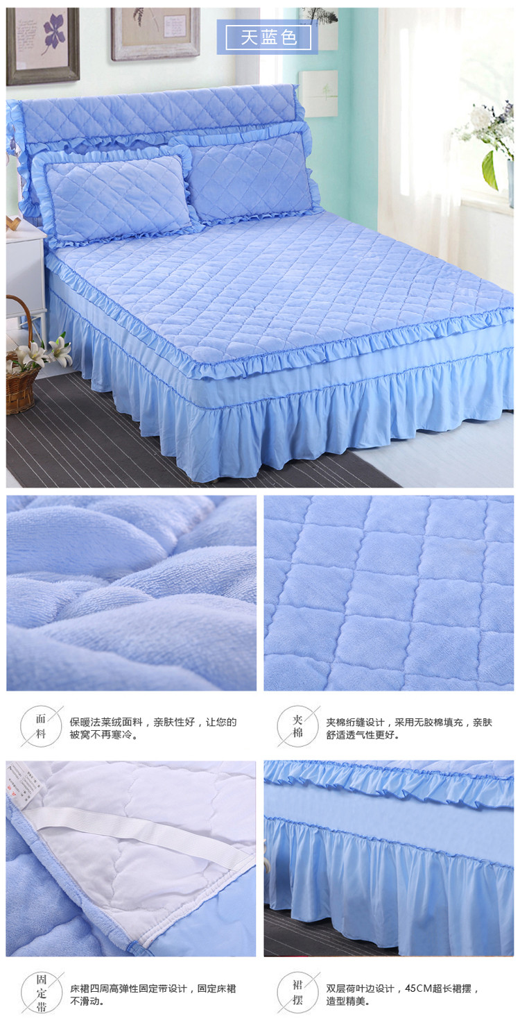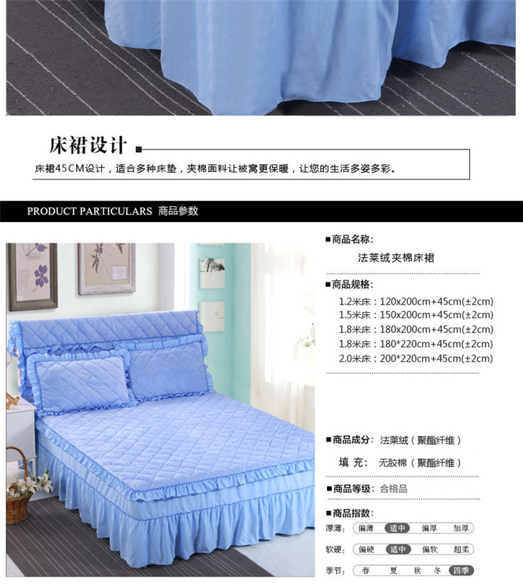 商品名称:情恒家纺 2020新款法莱绒夹棉床裙 天蓝