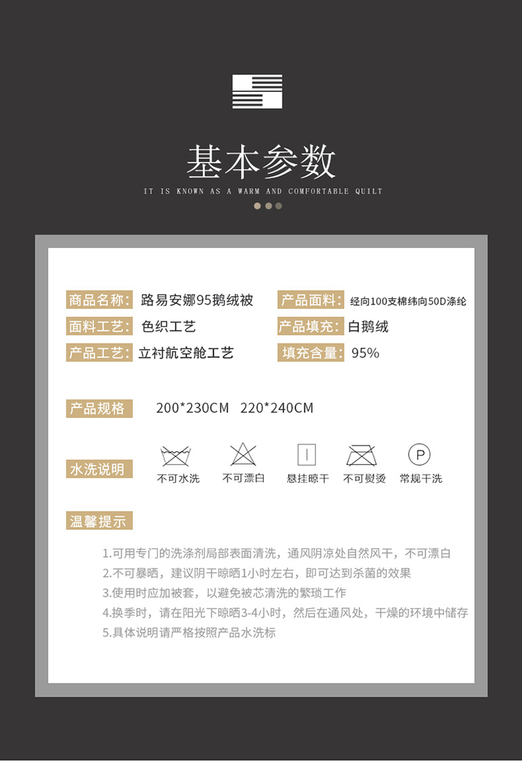 220*240cm国标95白鸭绒 | ¥1200.00 |
