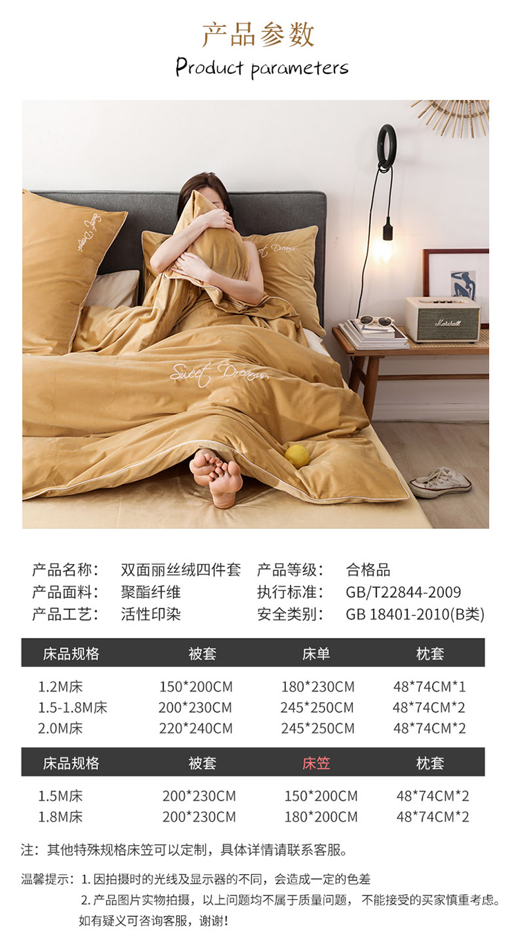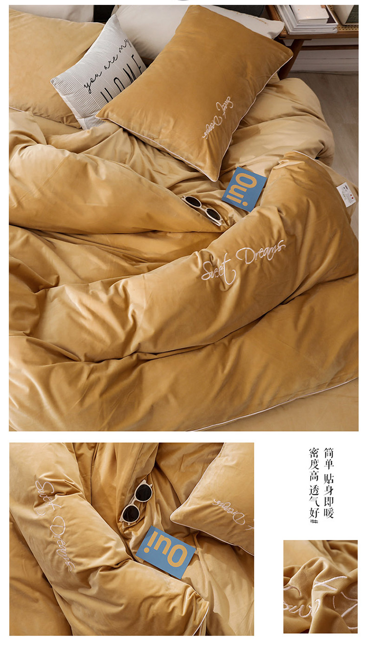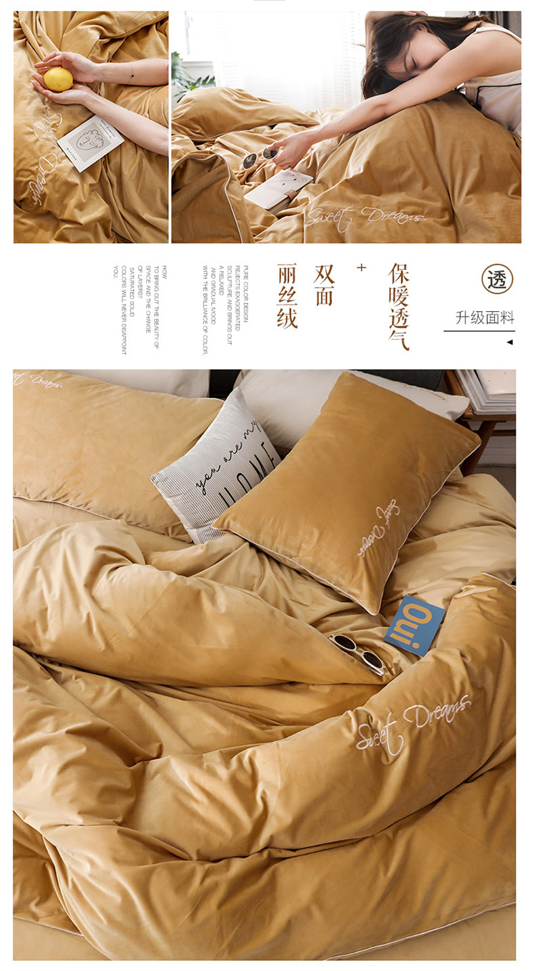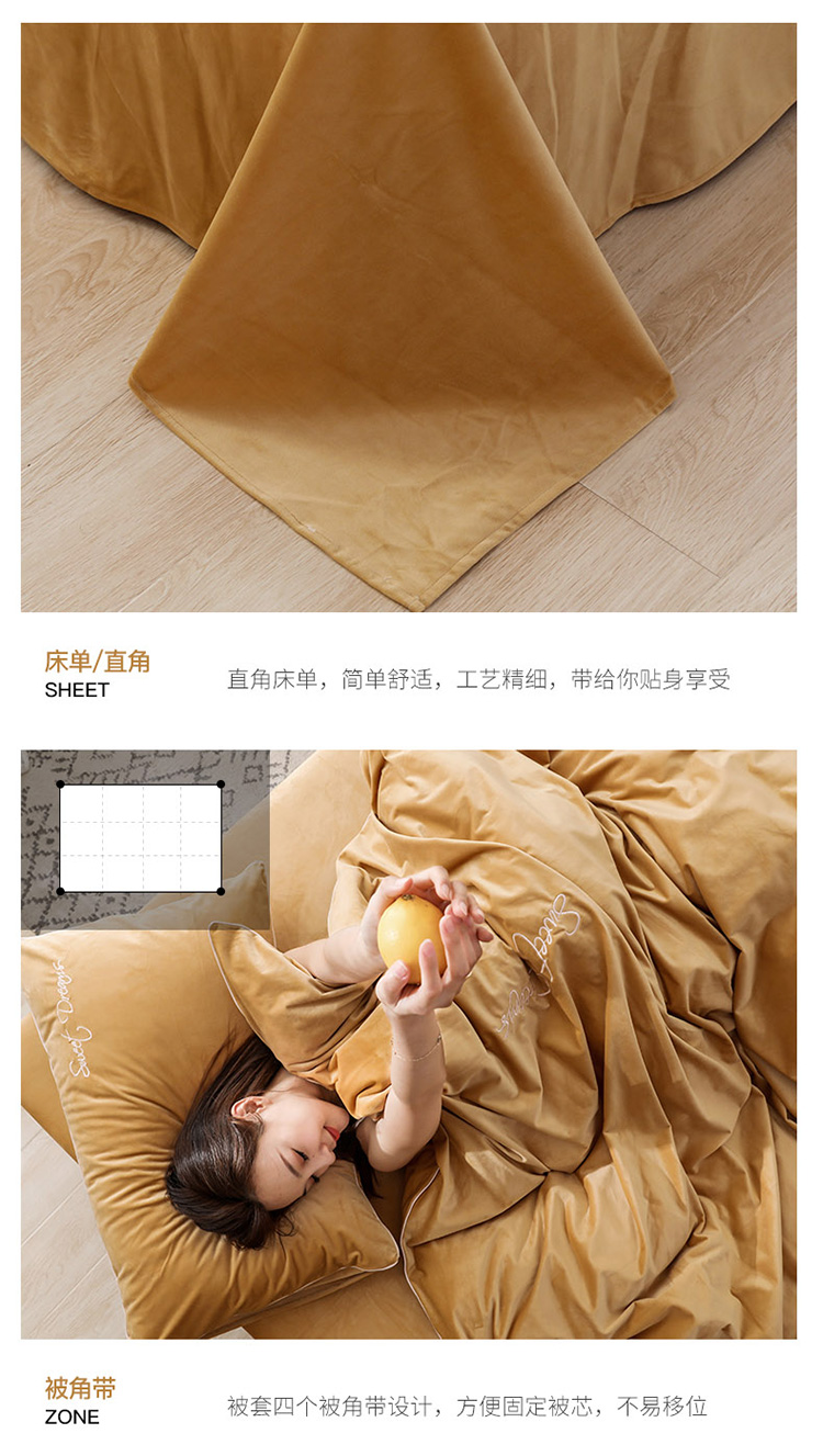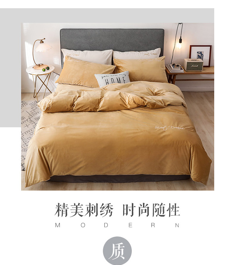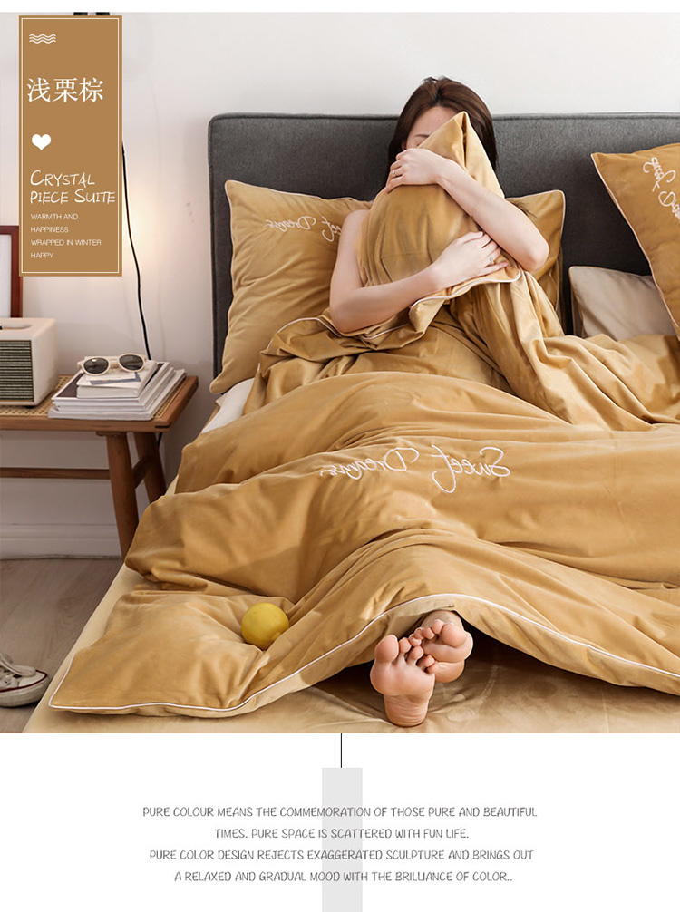 商品名称:爱缦 2019新款水晶绒丽丝绒绣花工艺款四件套 浅栗棕