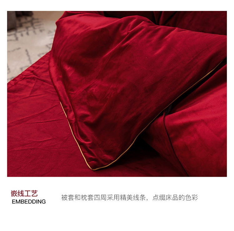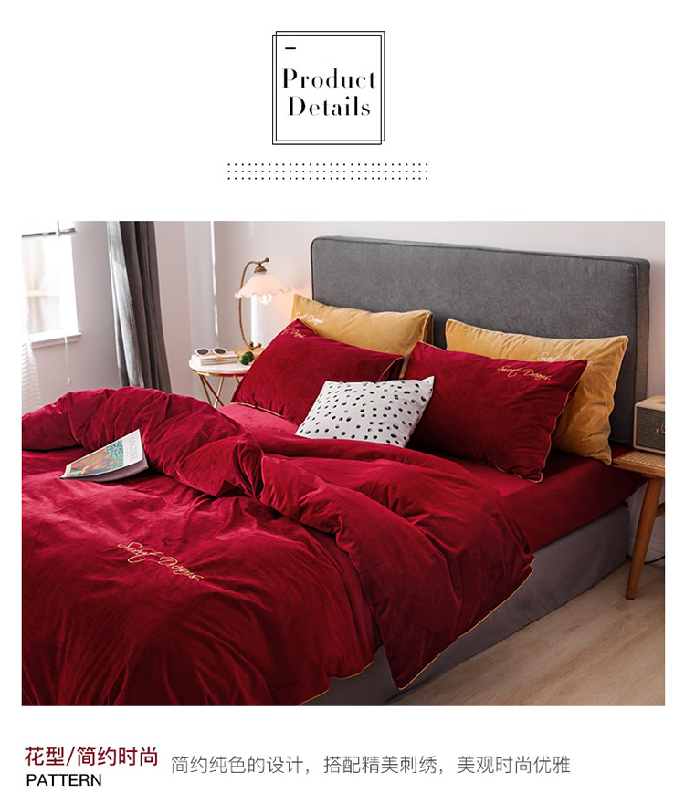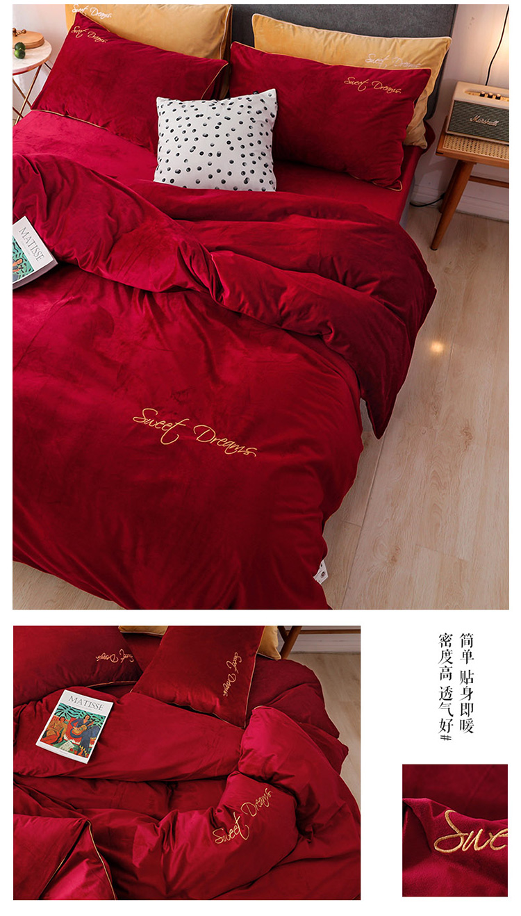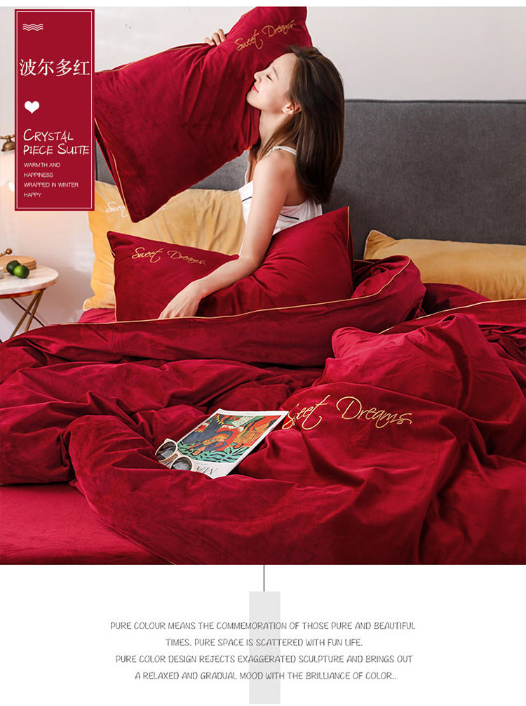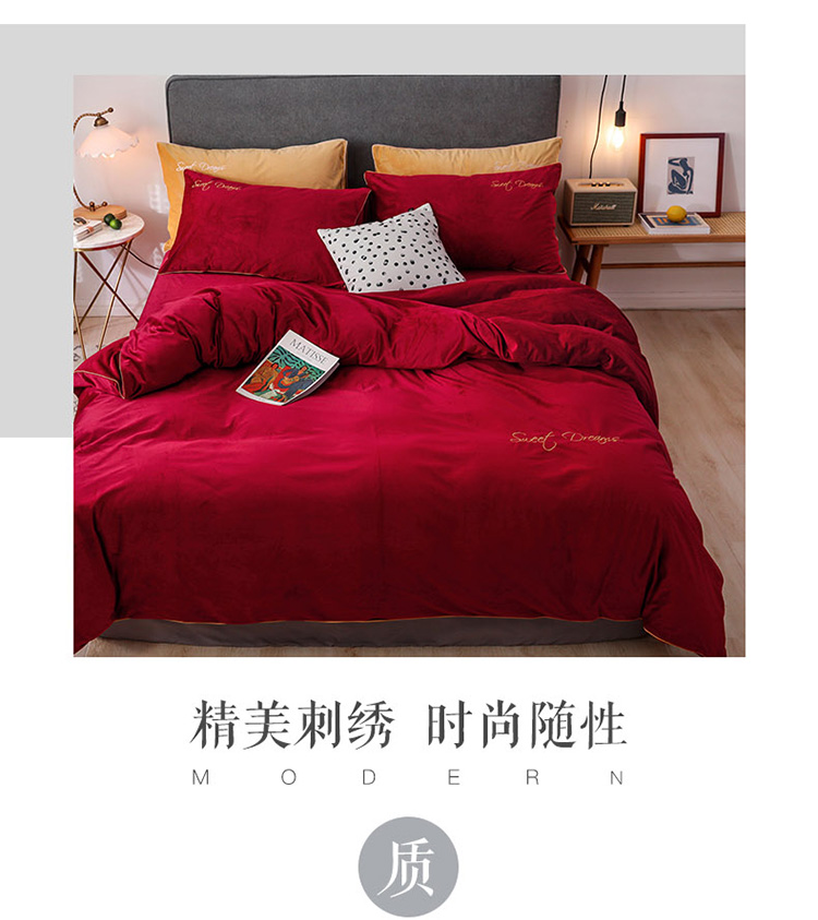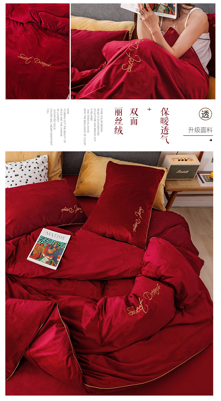 商品名称:爱缦 2019新款水晶绒丽丝绒绣花工艺款四件套 波尔多红