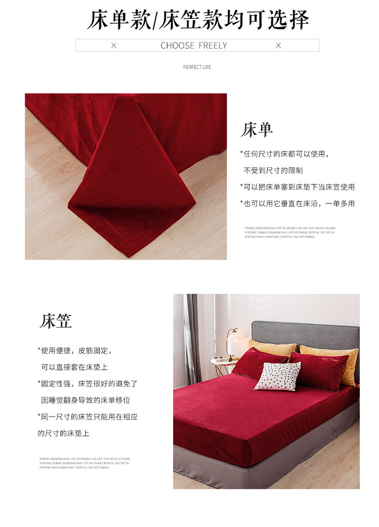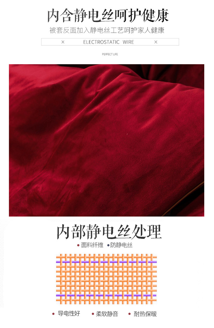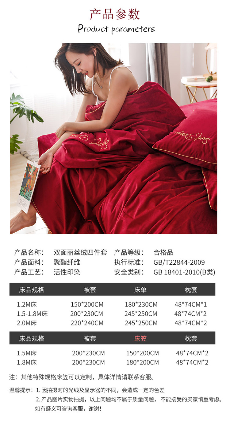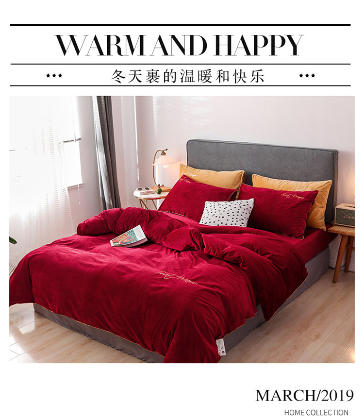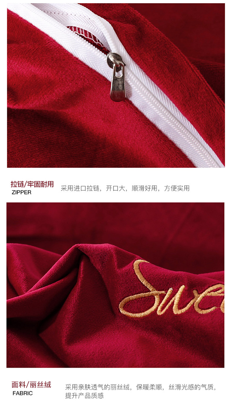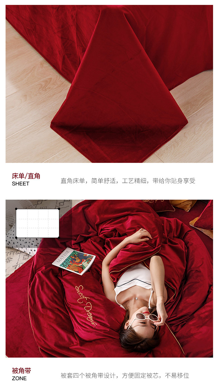 商品名称:爱缦 2019新款水晶绒丽丝绒绣花工艺款四件套 波尔多红