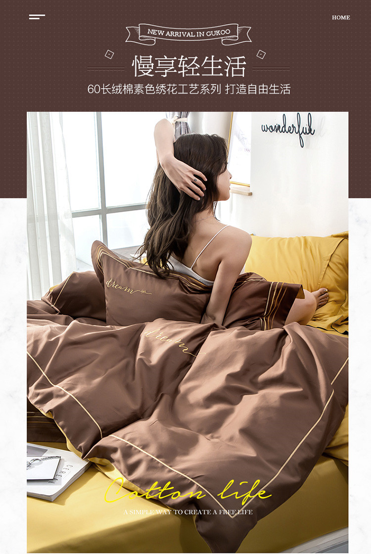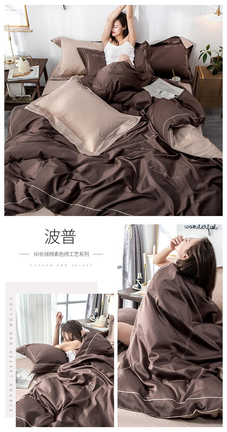 商品名称:瑞米家居 2019新款60长绒棉素色绣工艺系列四件套 魅惑
