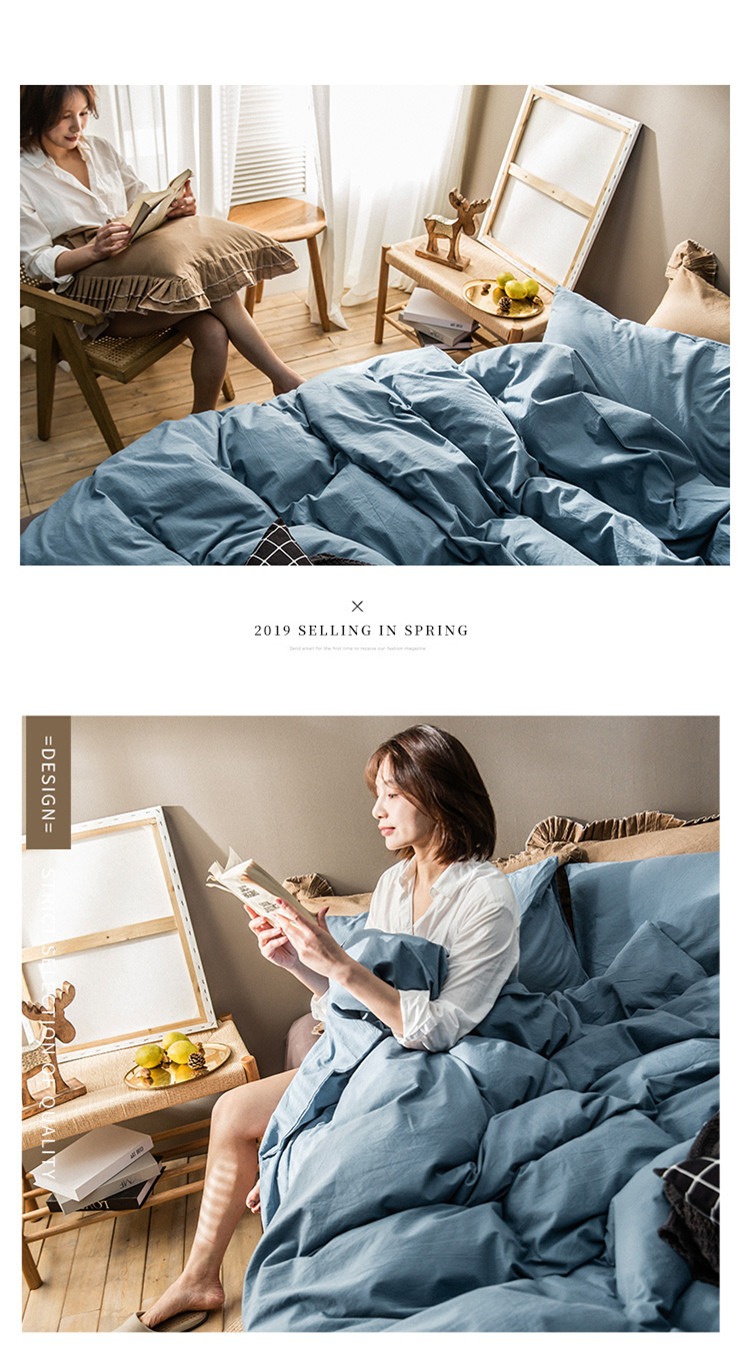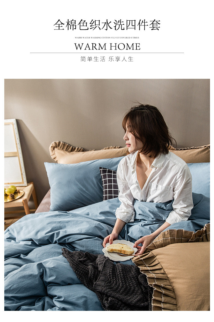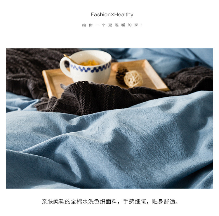 2020春夏新款全棉色织水洗四件套 菘蓝