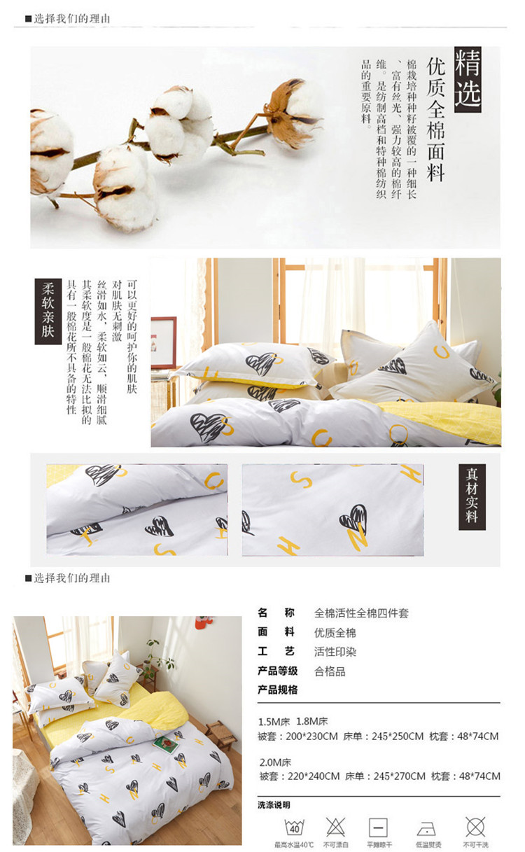 商品名称:星期三家纺 2020新款全棉活性四件套(加老板微信有会员价) 纯洁爱意