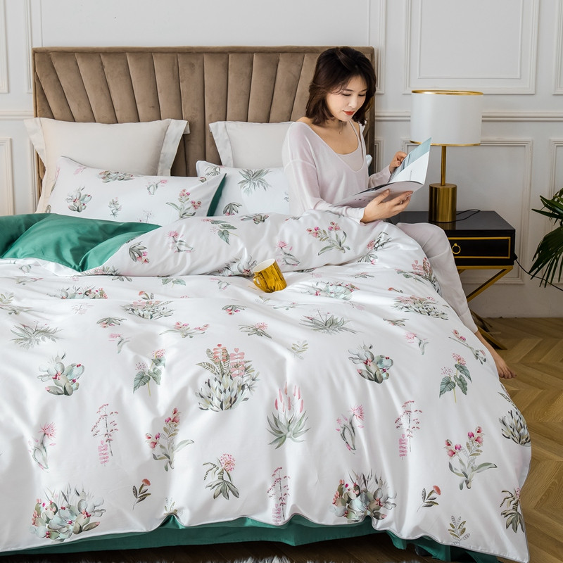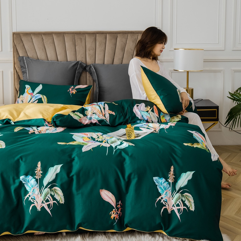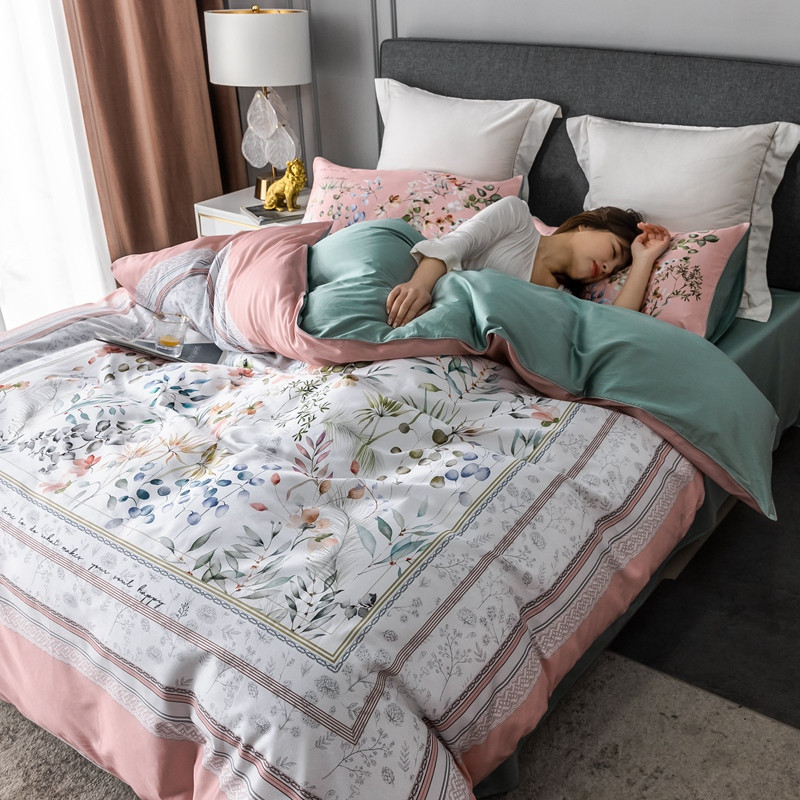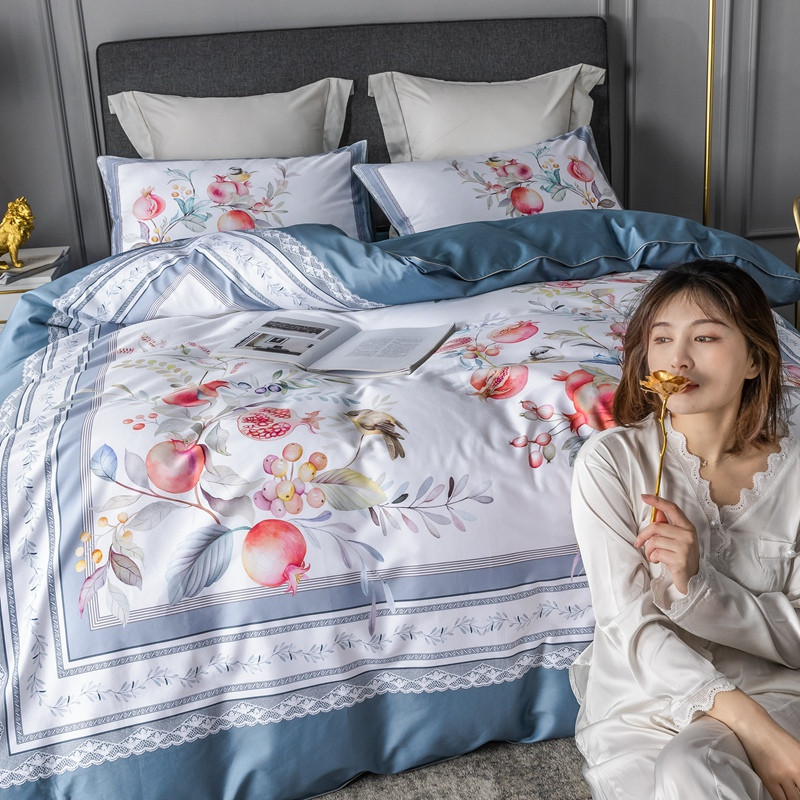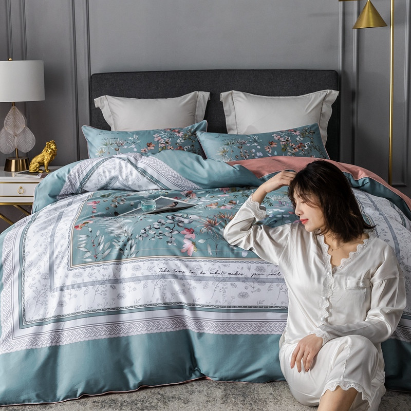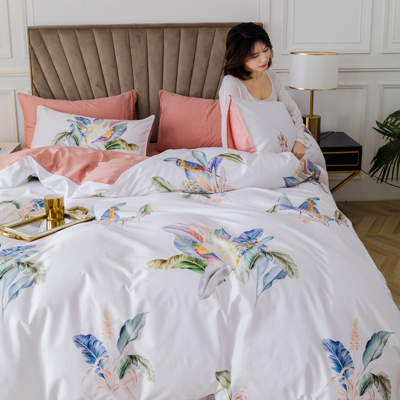(总)优然居家纺 2025新款50支全棉纯棉印花法式双头木耳边四件套,觅棠,莫妮卡艾绿,莫妮卡罗兰,慕斯粉,薇薇安