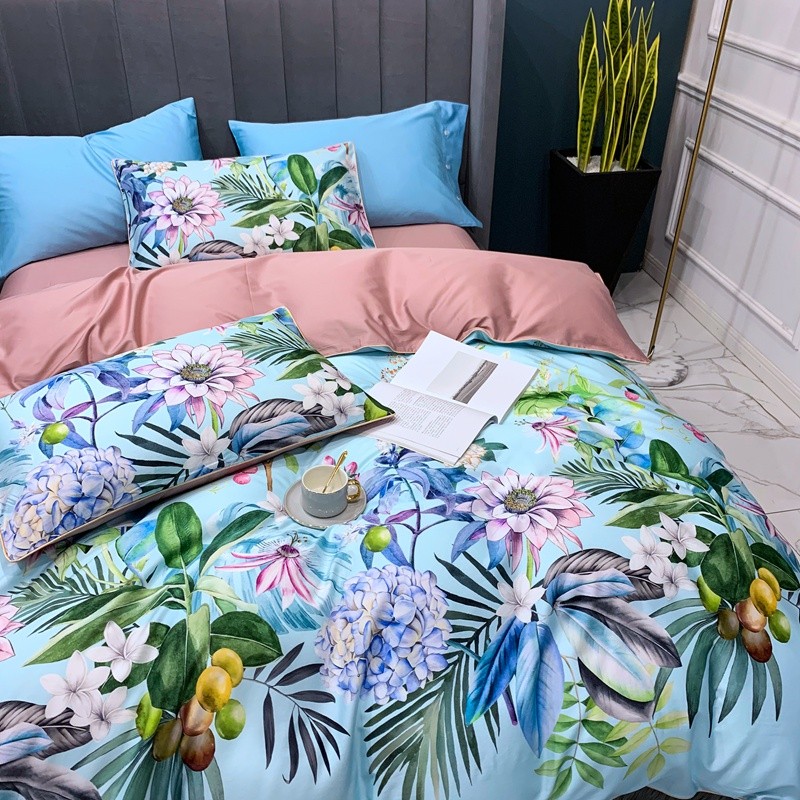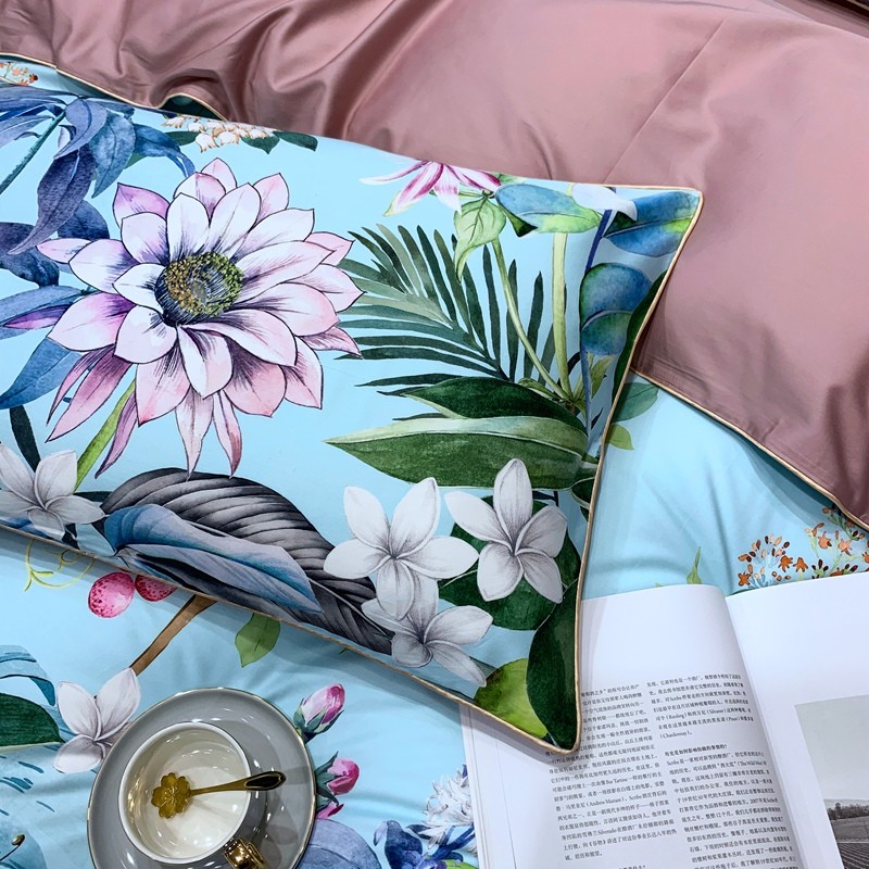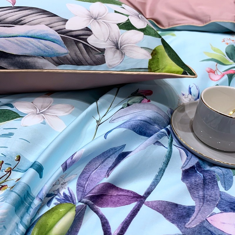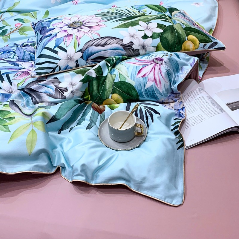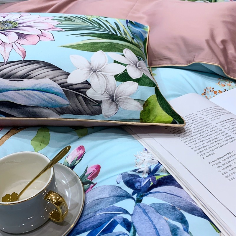 优然居2020新款60S长绒棉贡缎数码印花嵌绳四件套盛夏光年
