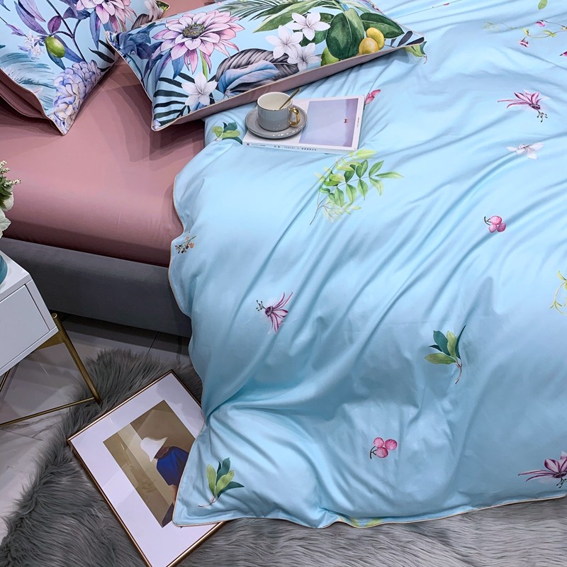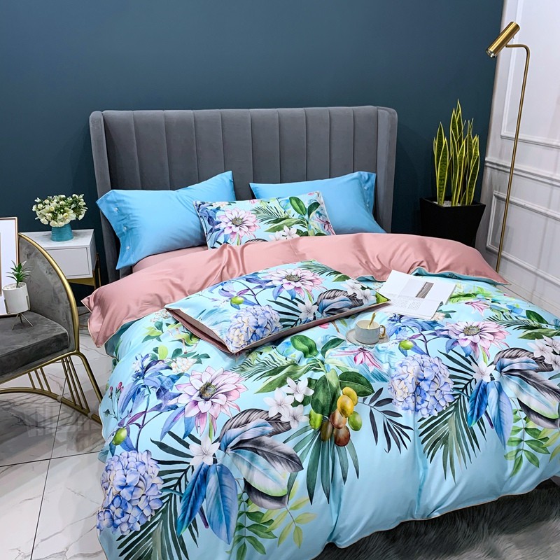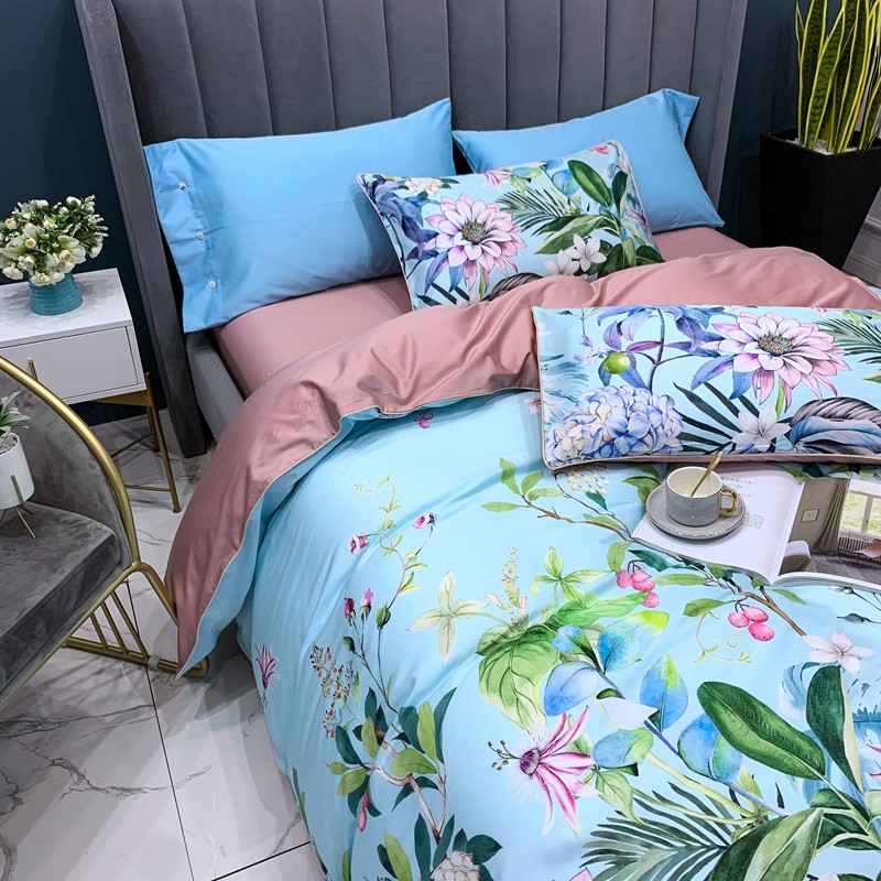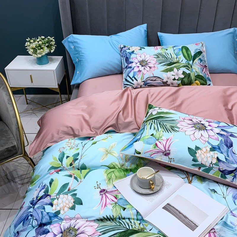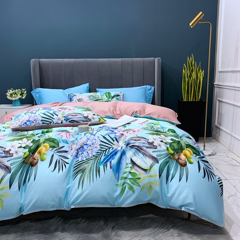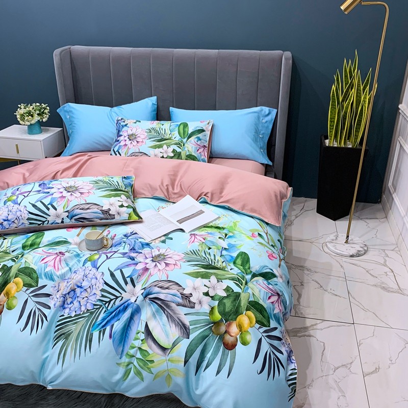 优然居2020新款60S长绒棉贡缎数码印花嵌绳四件套盛夏光年