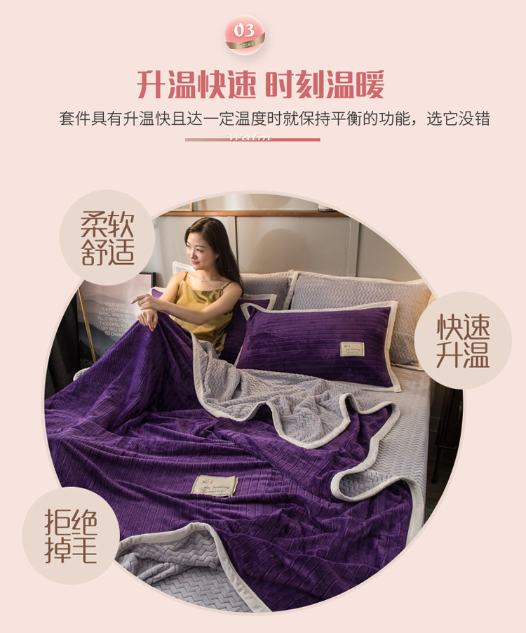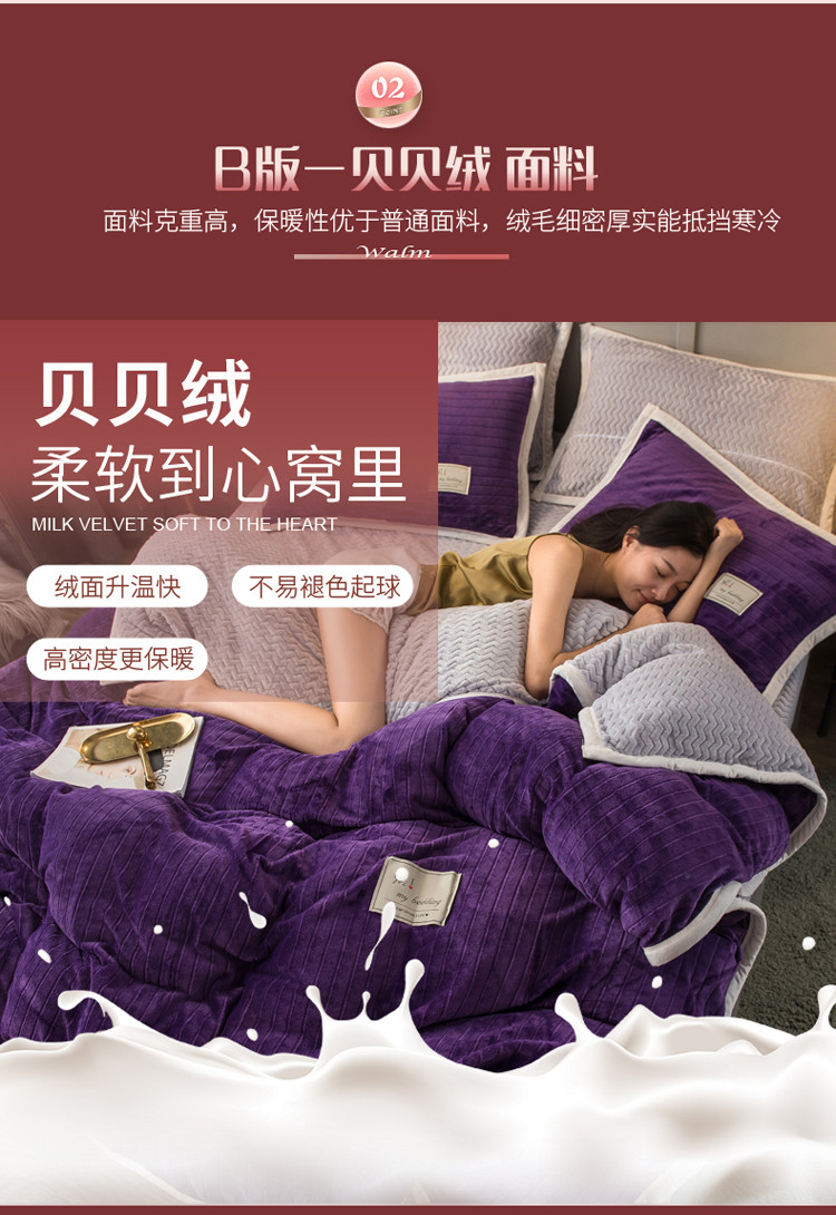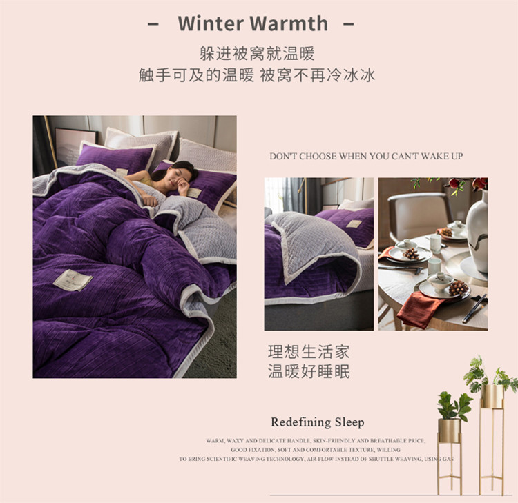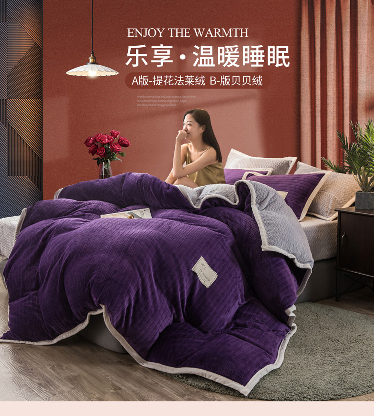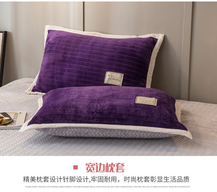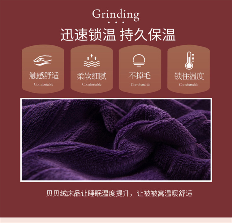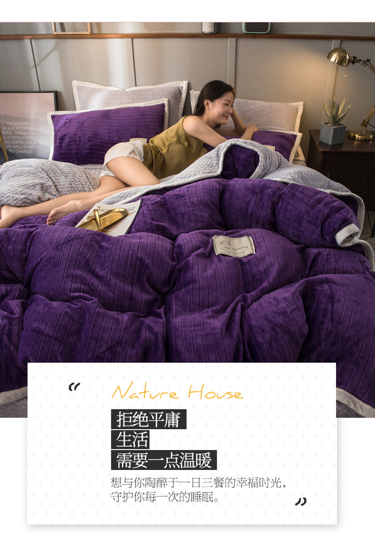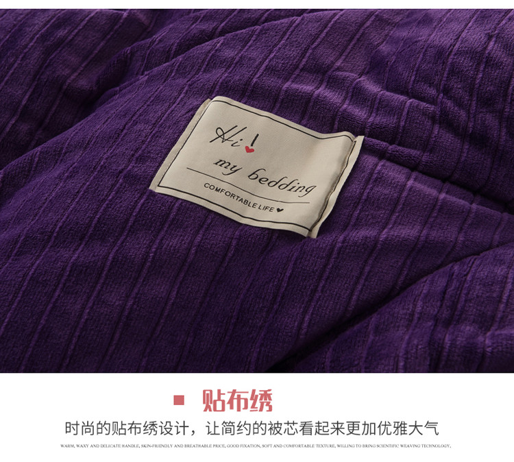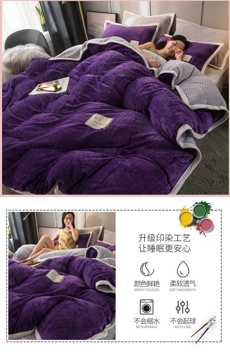 商品名称:欧冠 2019提花法莱绒加贝贝绒加厚四件套 紫灰