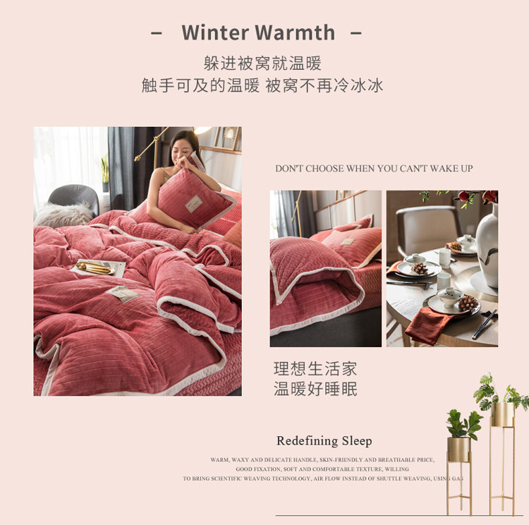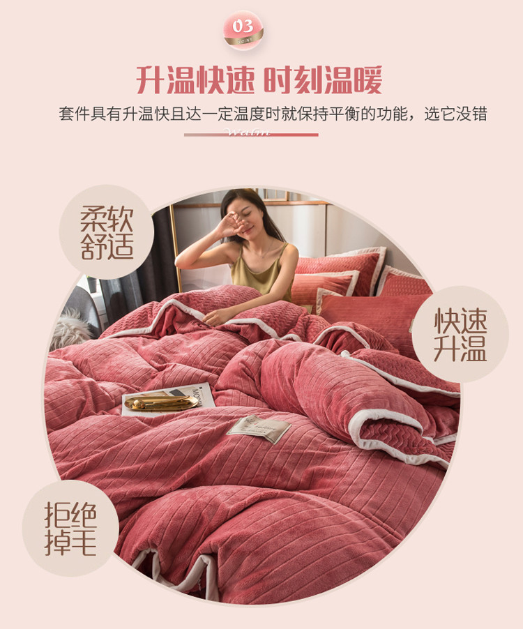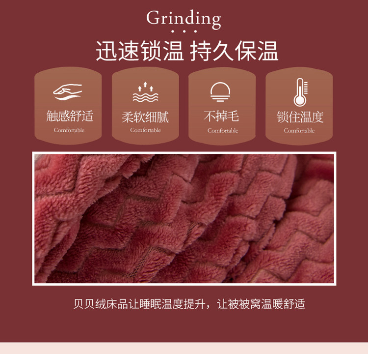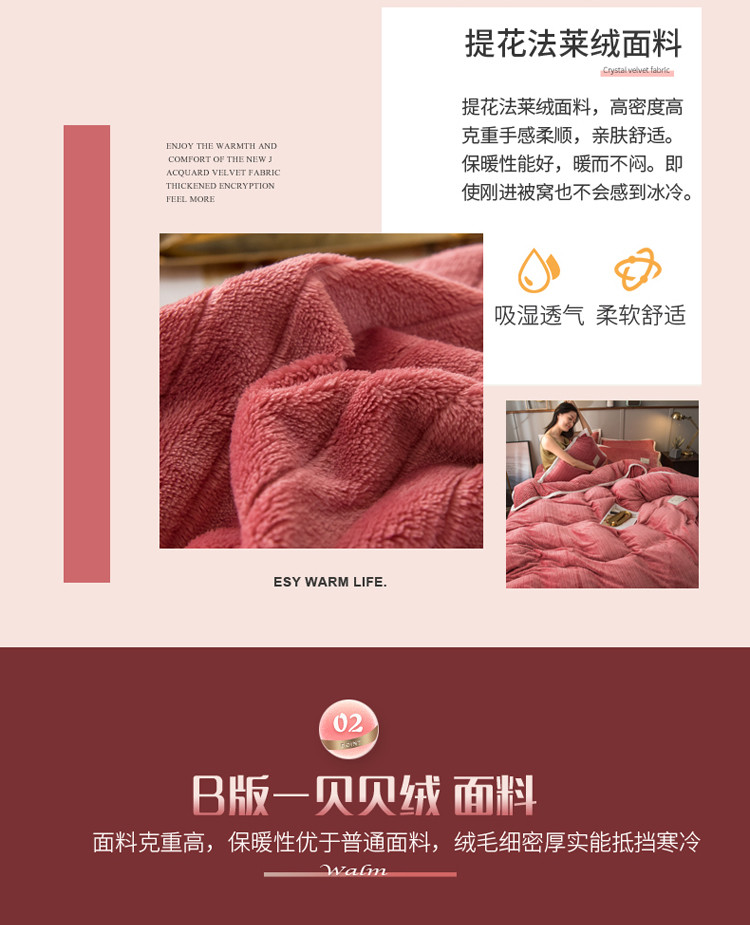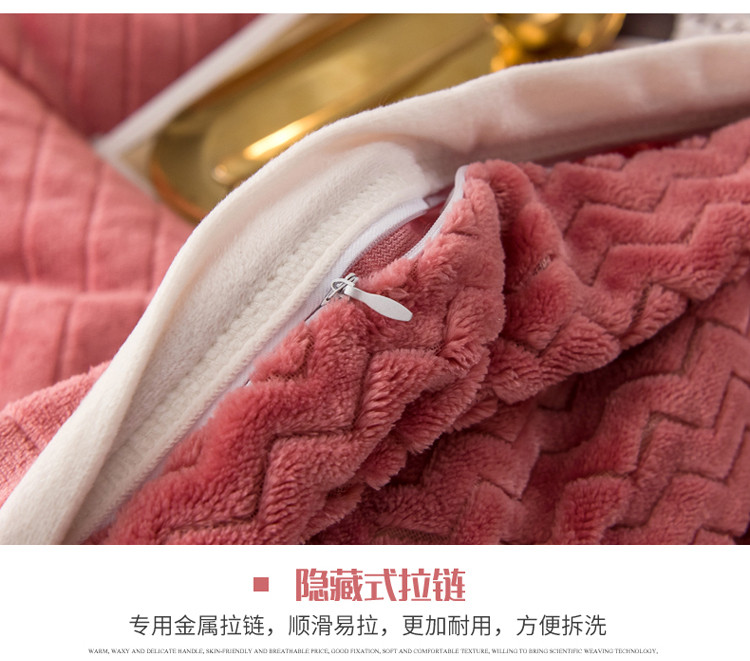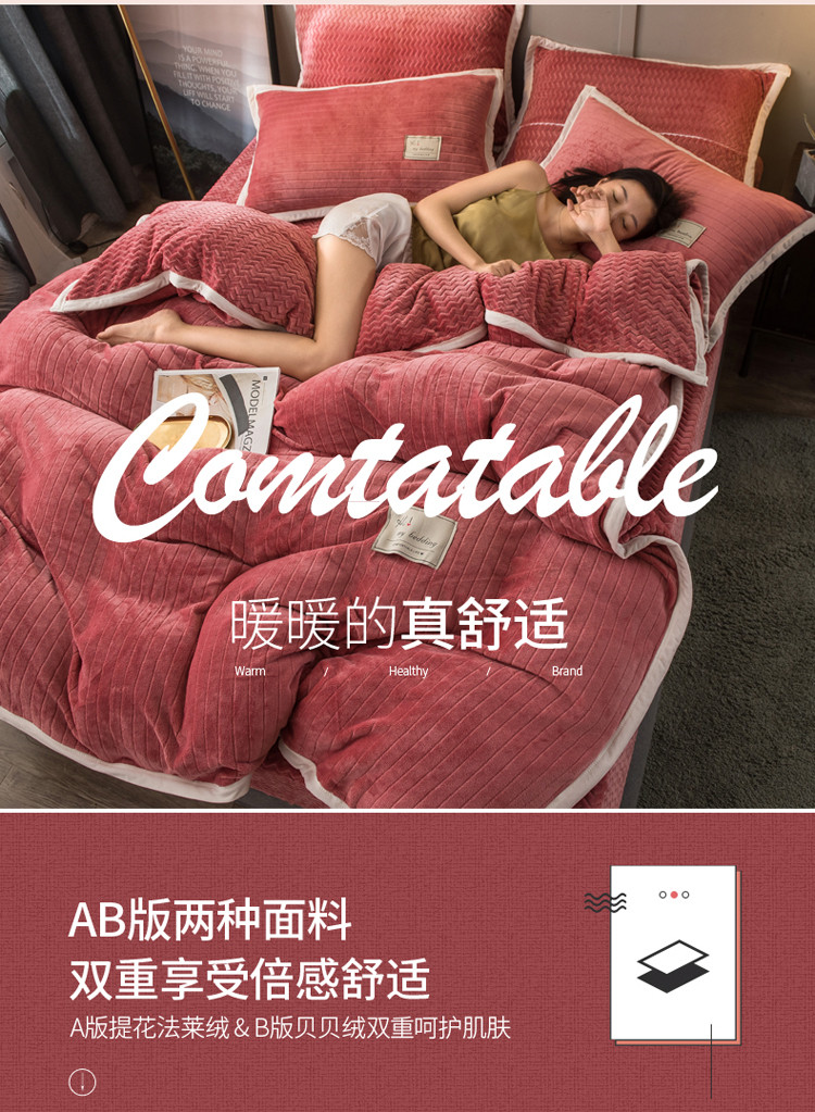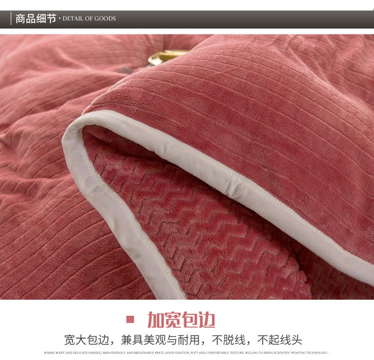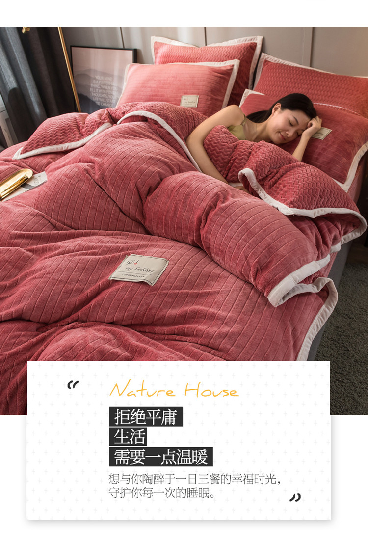 商品名称:欧冠 2019提花法莱绒加贝贝绒加厚四件套 豆沙