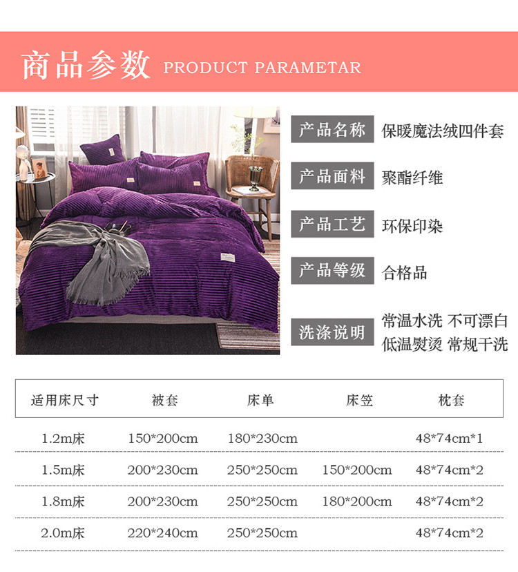 商品名称:欧冠 2019秋冬魔法绒暖绒系列四件套床单款 普罗旺斯
