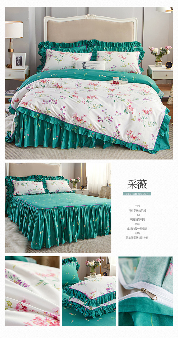 (总)菊上家纺 2023秋冬新品法式花边全棉床盖四件套,安妮紫,花千骨,小欢喜,布拉格,罗蔓莉,玛雅灰,小幸运,卡町绿,恋花影,薇薇安