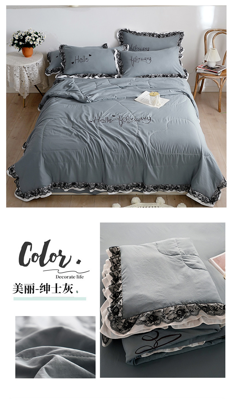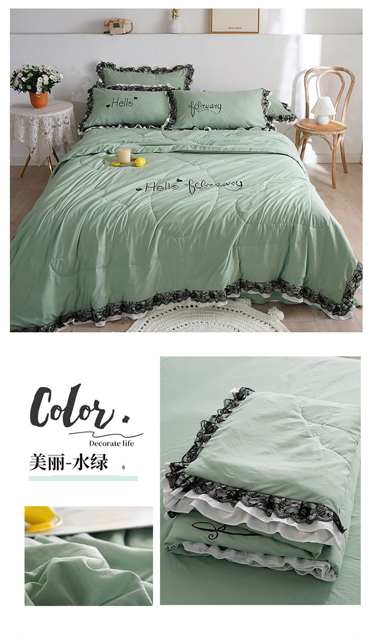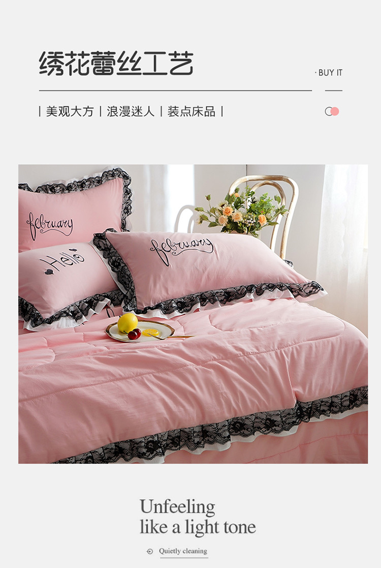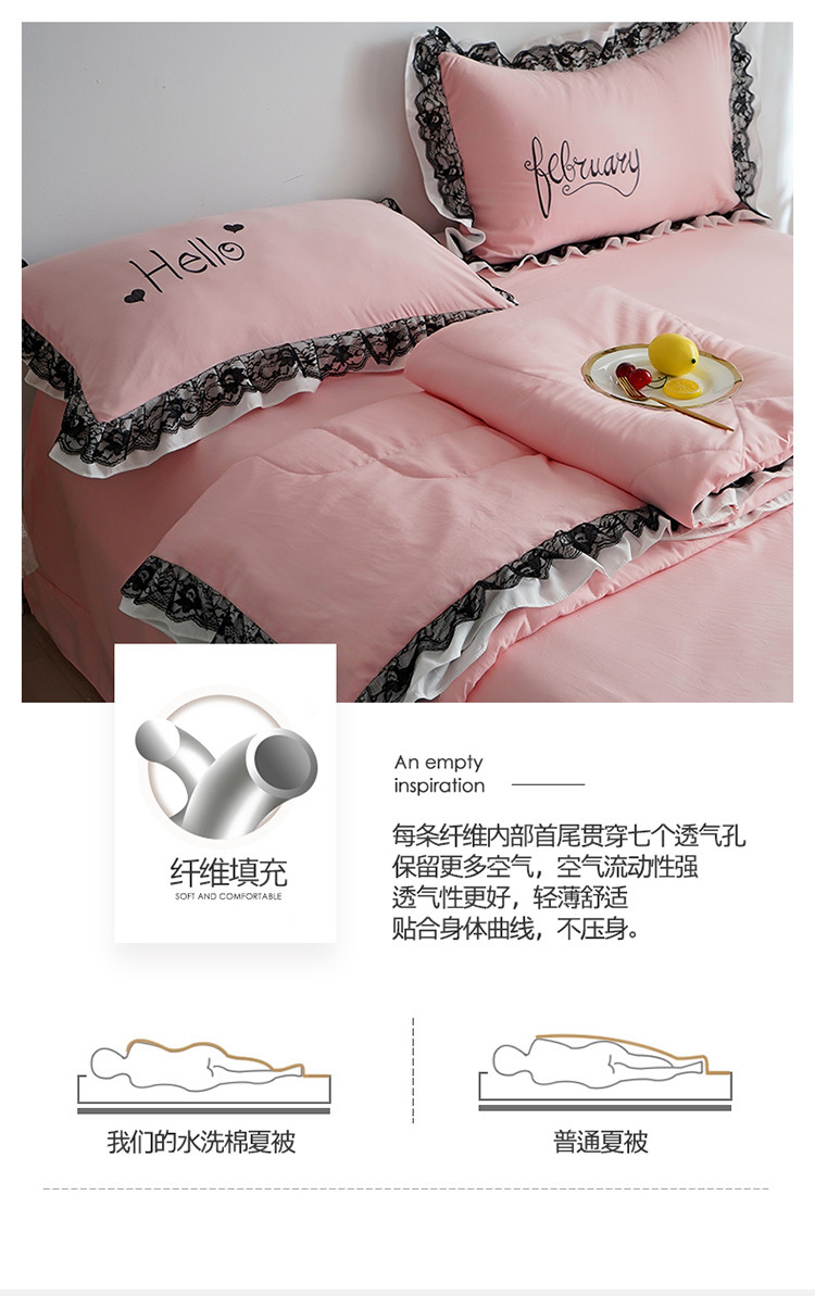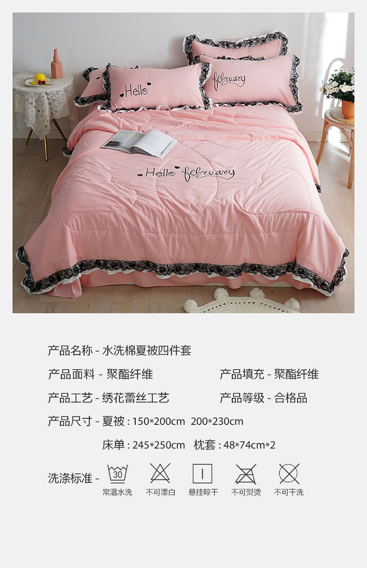 (总)骏腾家纺 2022新款水洗棉夏被四件套蕾丝绣花款