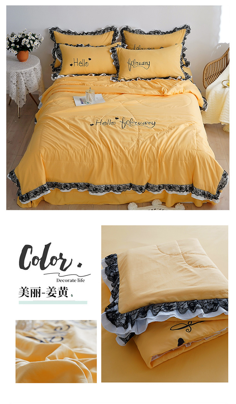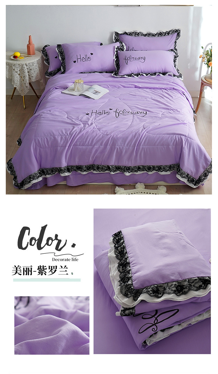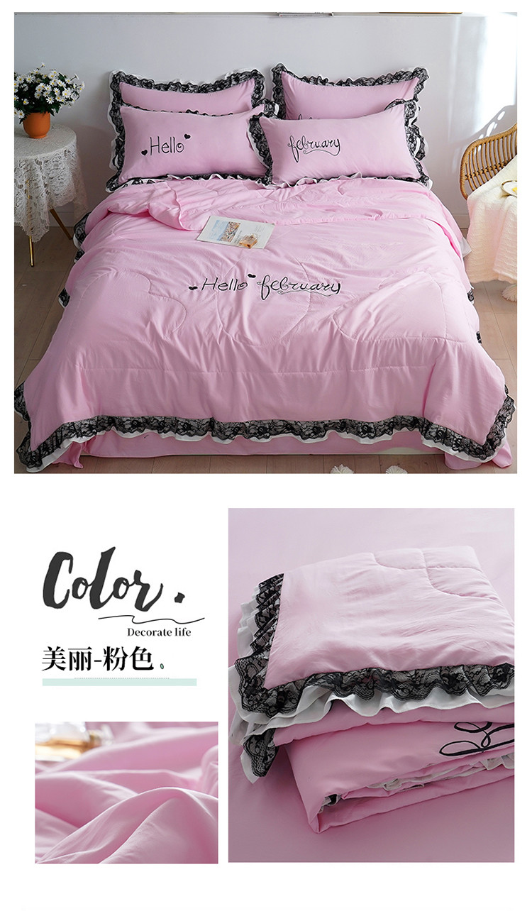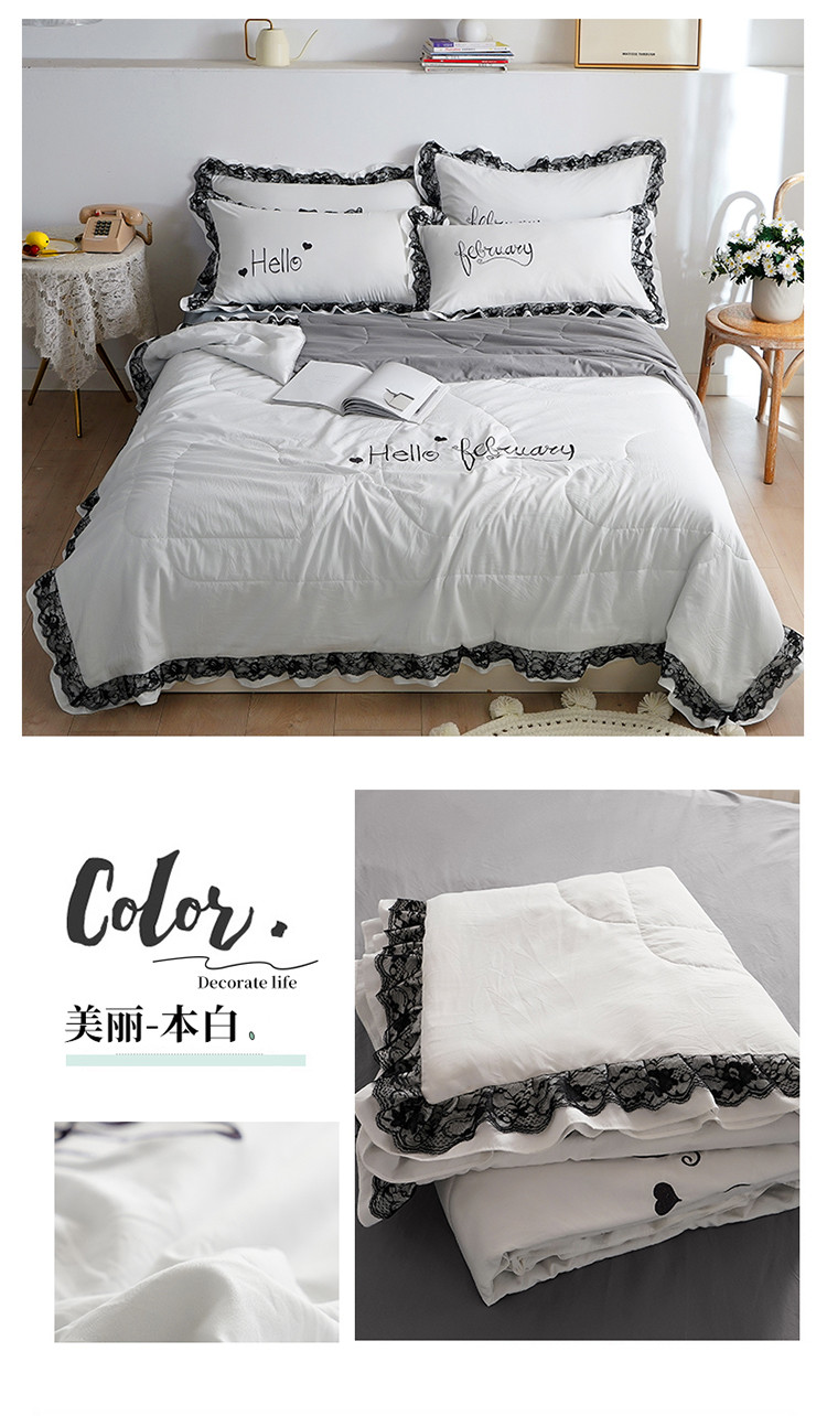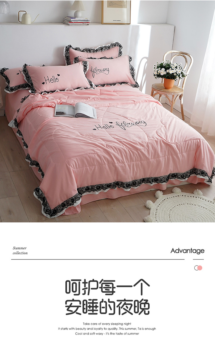 (总)骏腾家纺 2022新款水洗棉夏被四件套蕾丝绣花款
