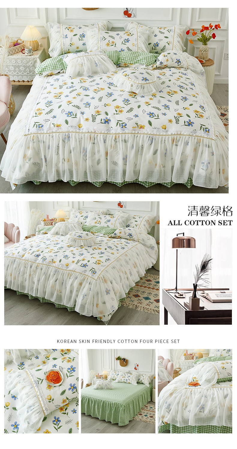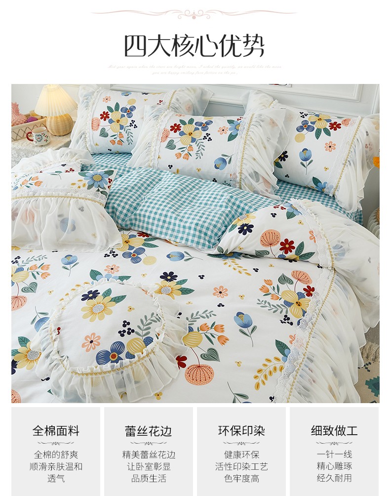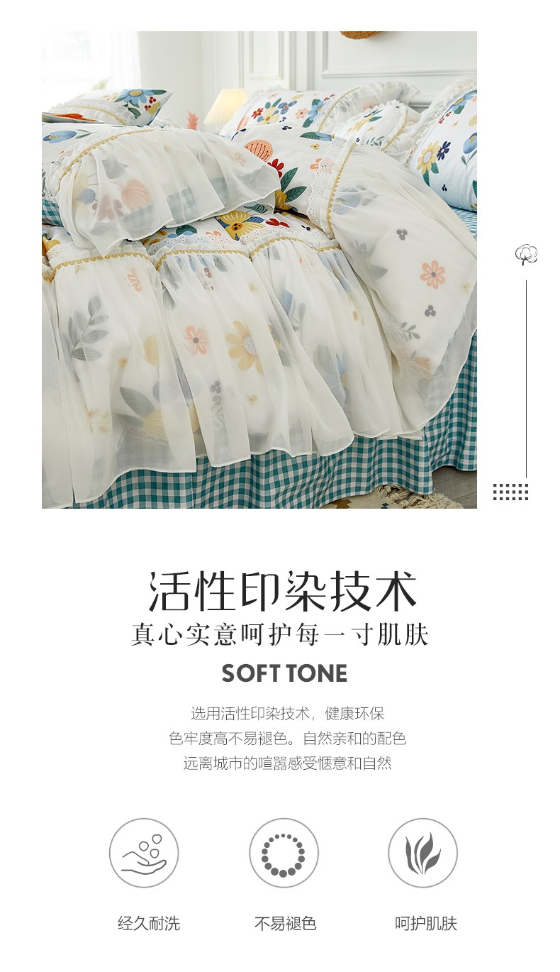 (总)亲亲公主 2025全棉蕾丝花边床裙公主风四件套,甜心花园-玉色,甜心花园-绿色,甜心花园-黄色,甜心花园-浅紫色,甜心花园-蓝色,甜心花园-粉色