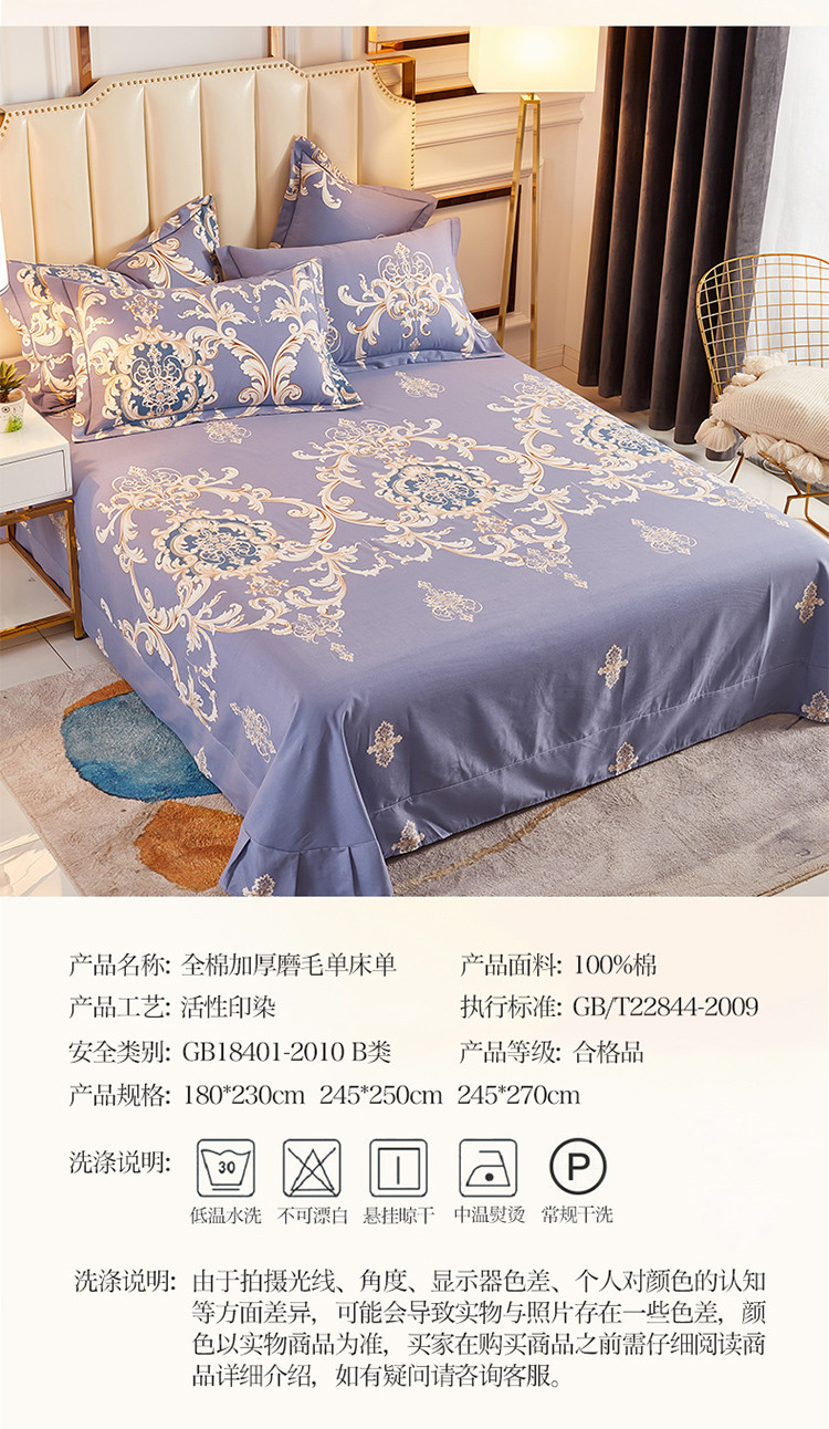 商品名称:雲归梦 2020新款多规格全棉加厚磨毛单床单 繁华似锦