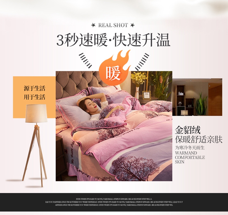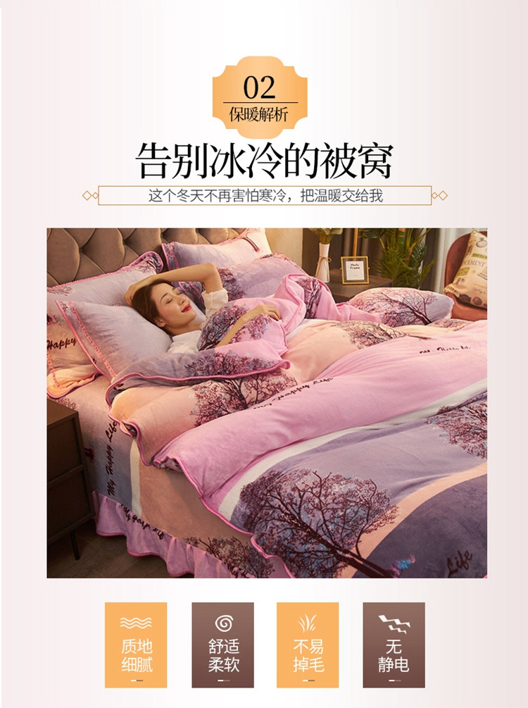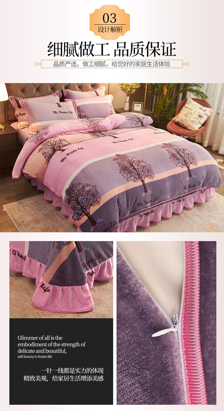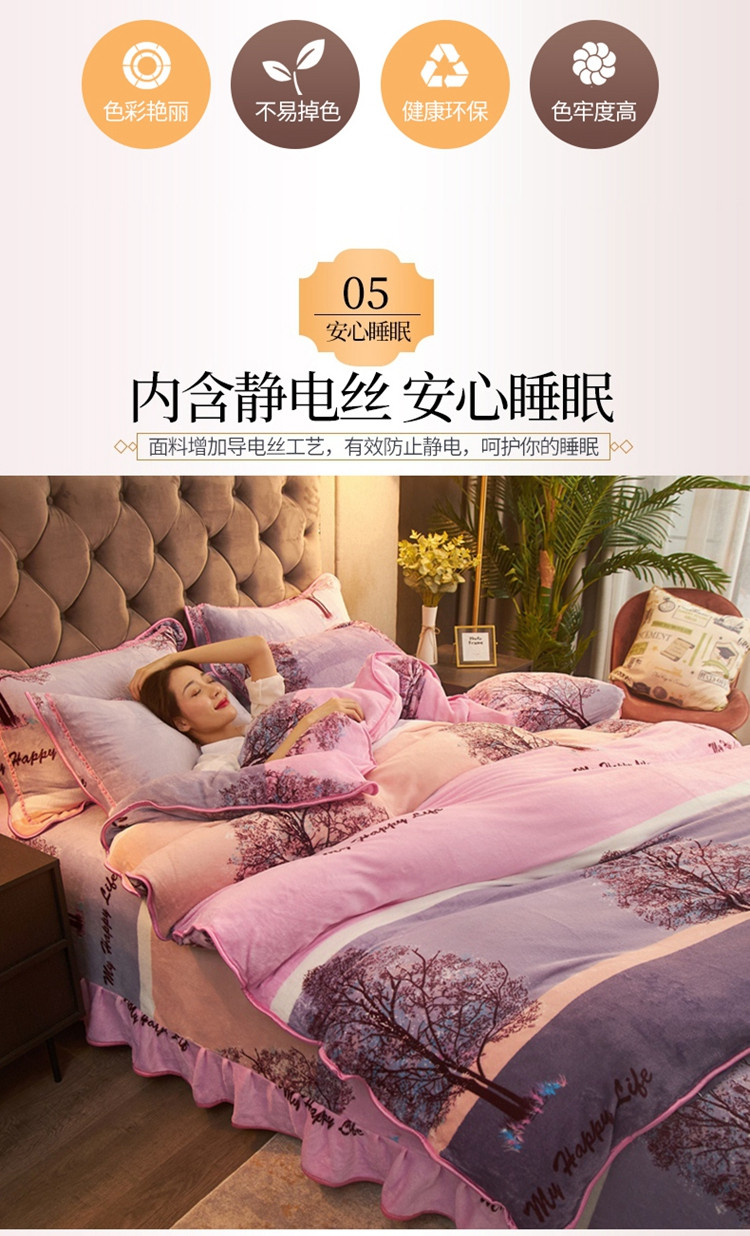 爱洛牛奶绒宝宝绒水晶绒法莱绒金貂绒四件套 幸福树