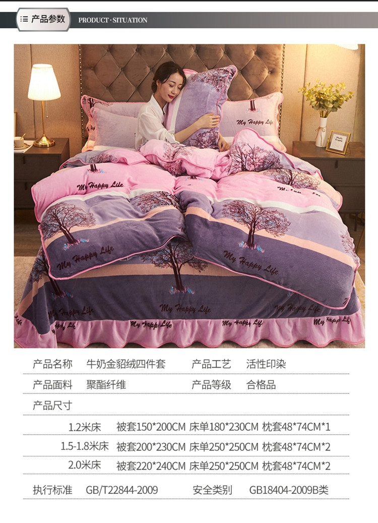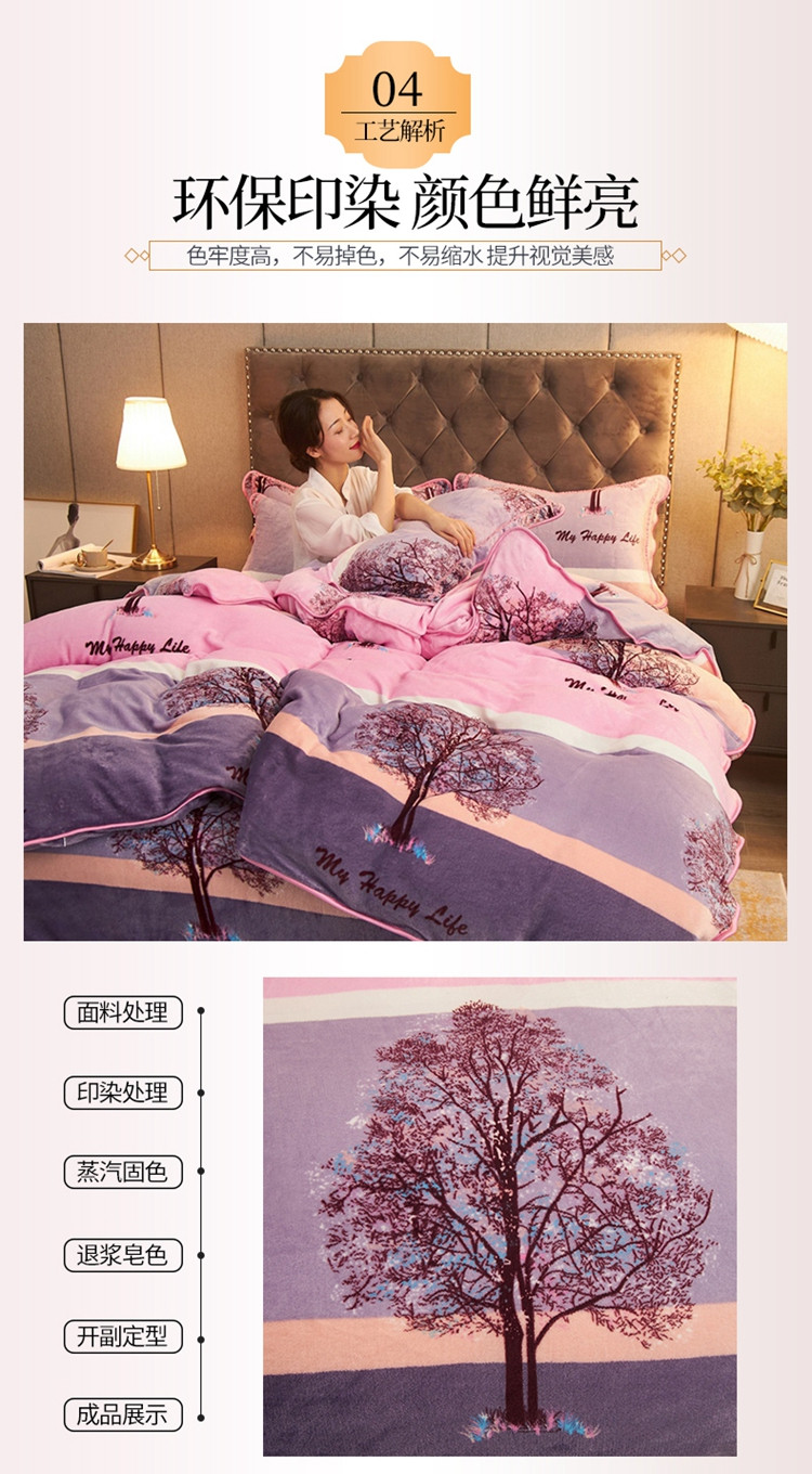 商品名称:爱洛牛奶绒宝宝绒水晶绒法莱绒金貂绒四件套 幸福树