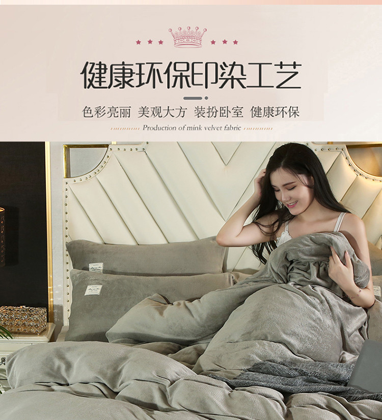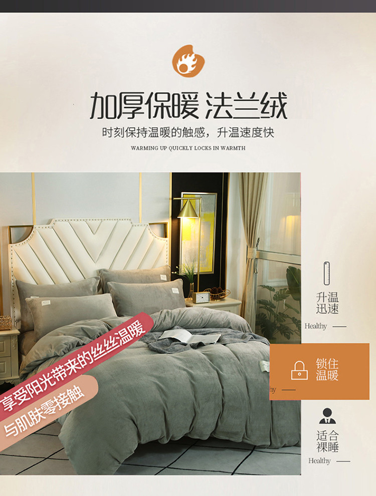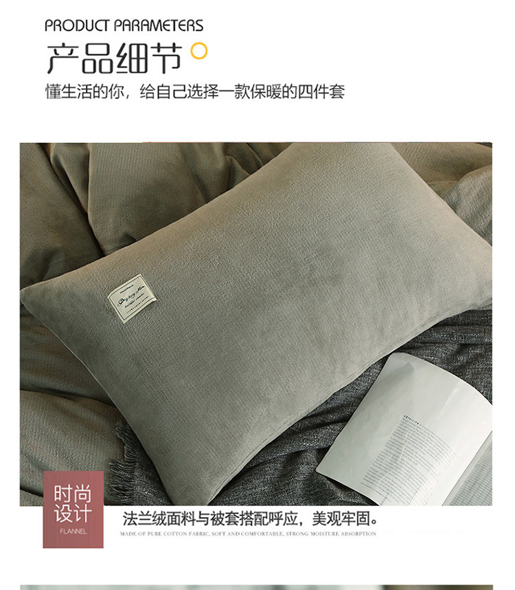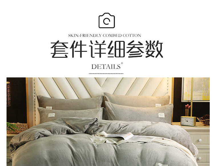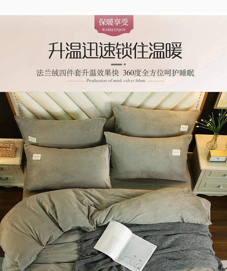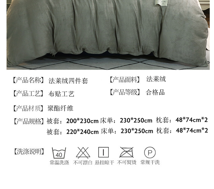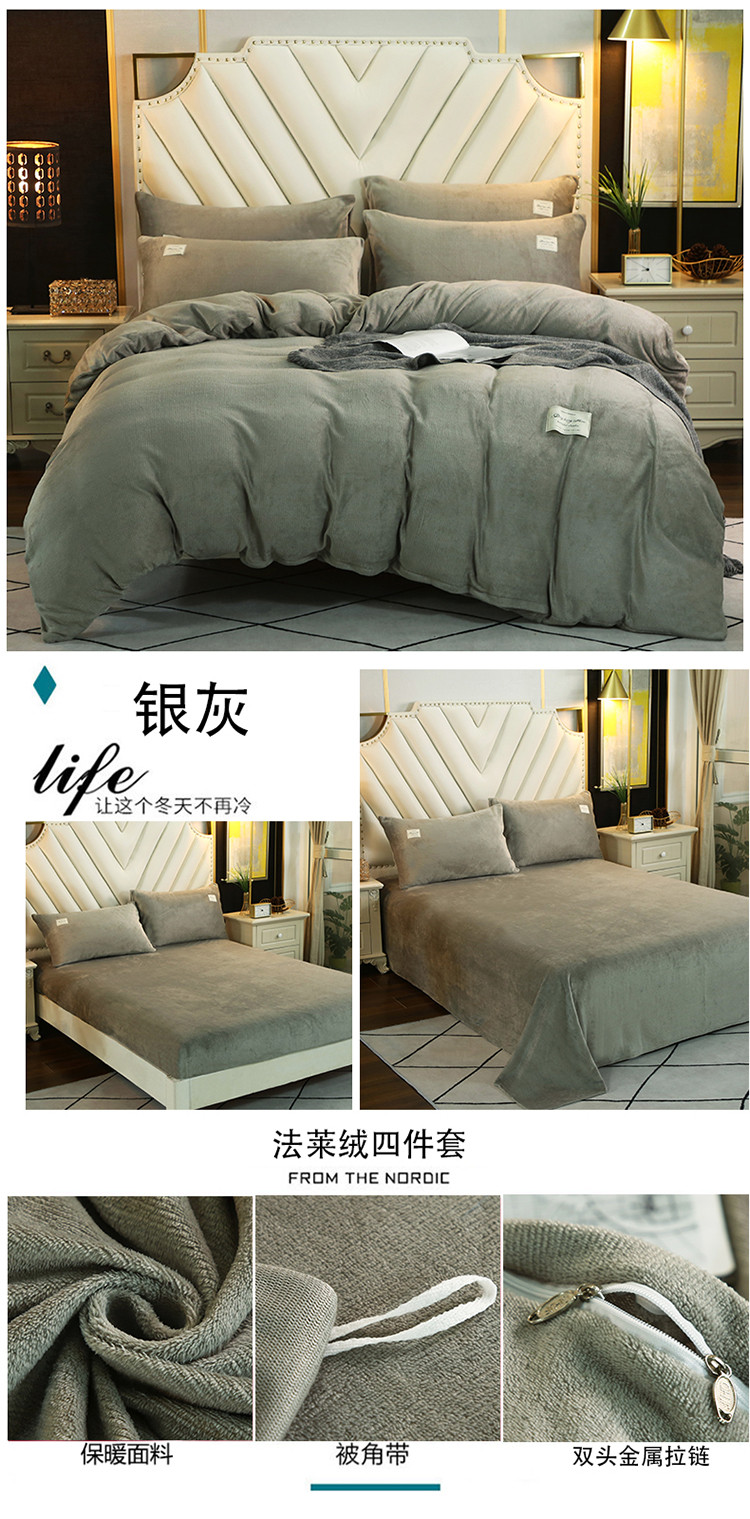 商品名称:情恒 2020新款纯色牛奶绒水晶绒法莱绒贴标四件套 银灰