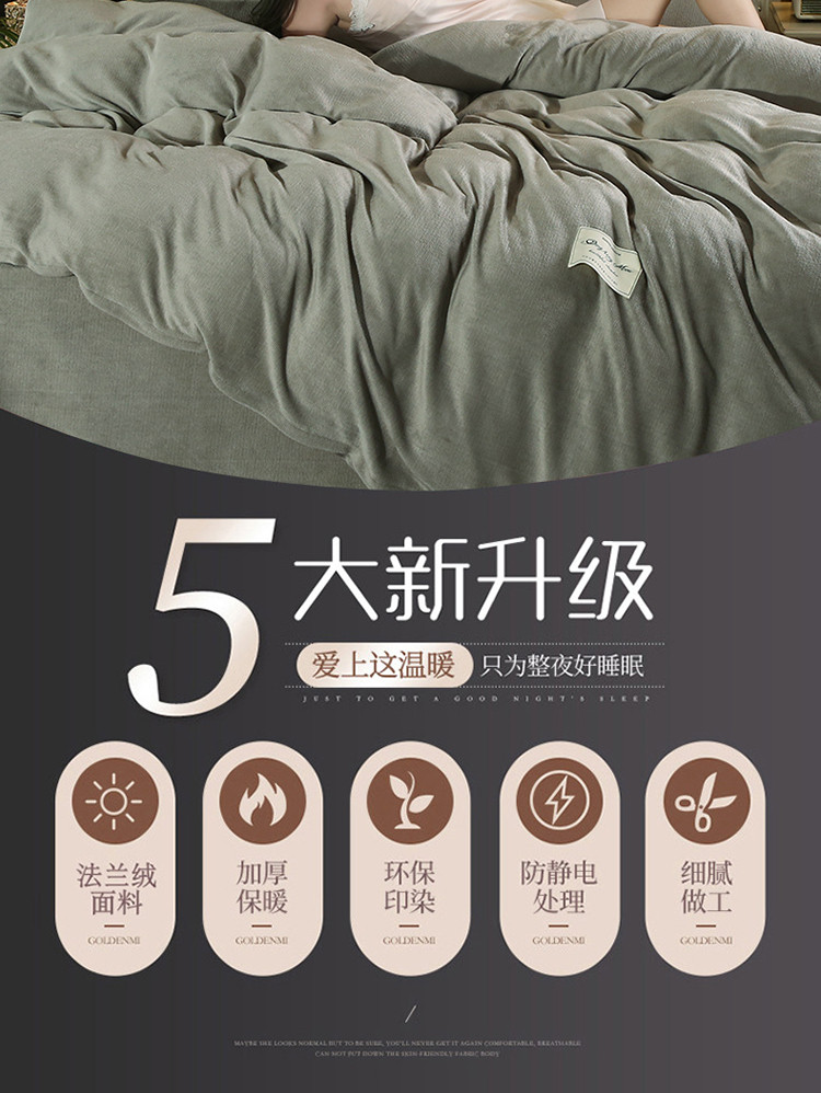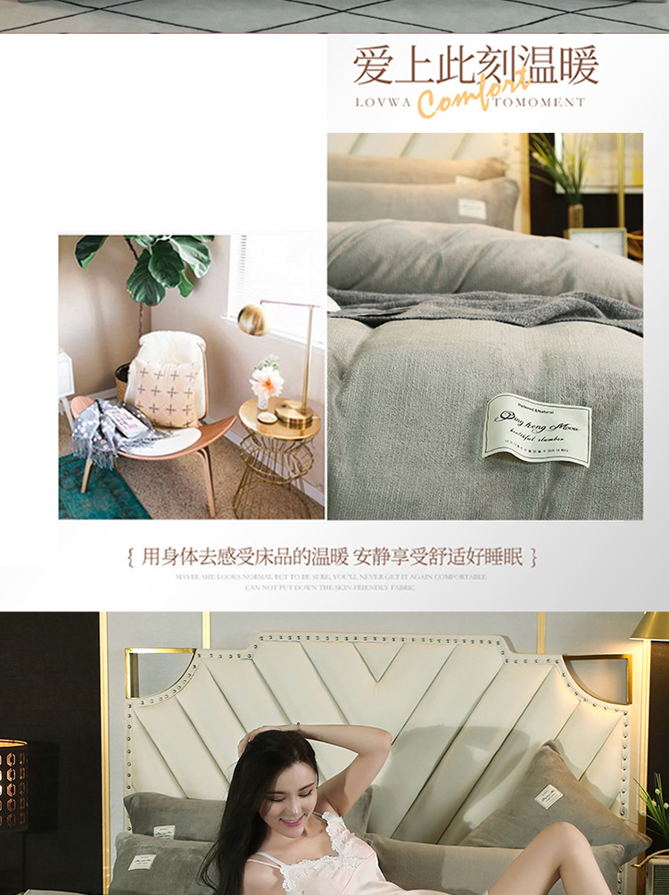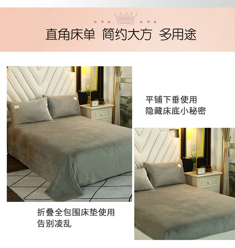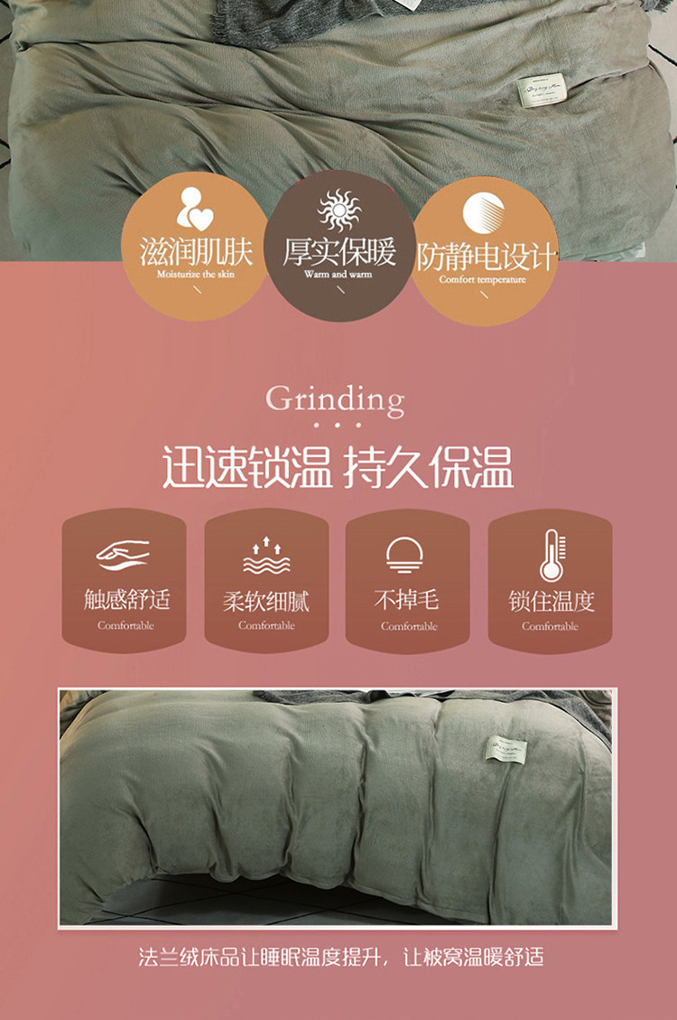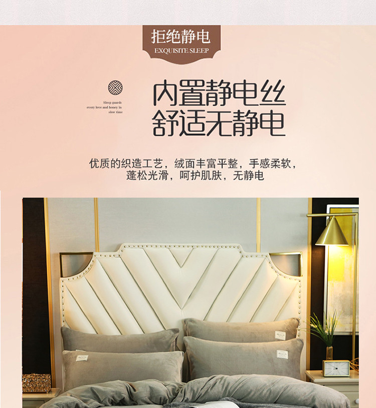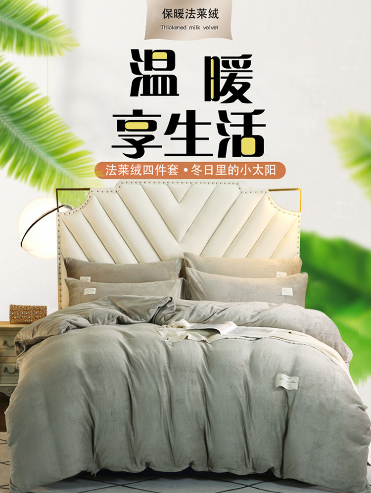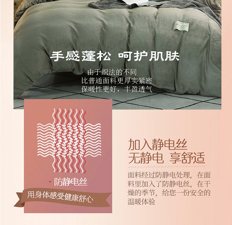 商品名称:情恒 2020新款纯色牛奶绒水晶绒法莱绒贴标四件套 银灰