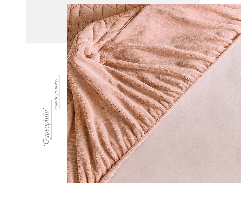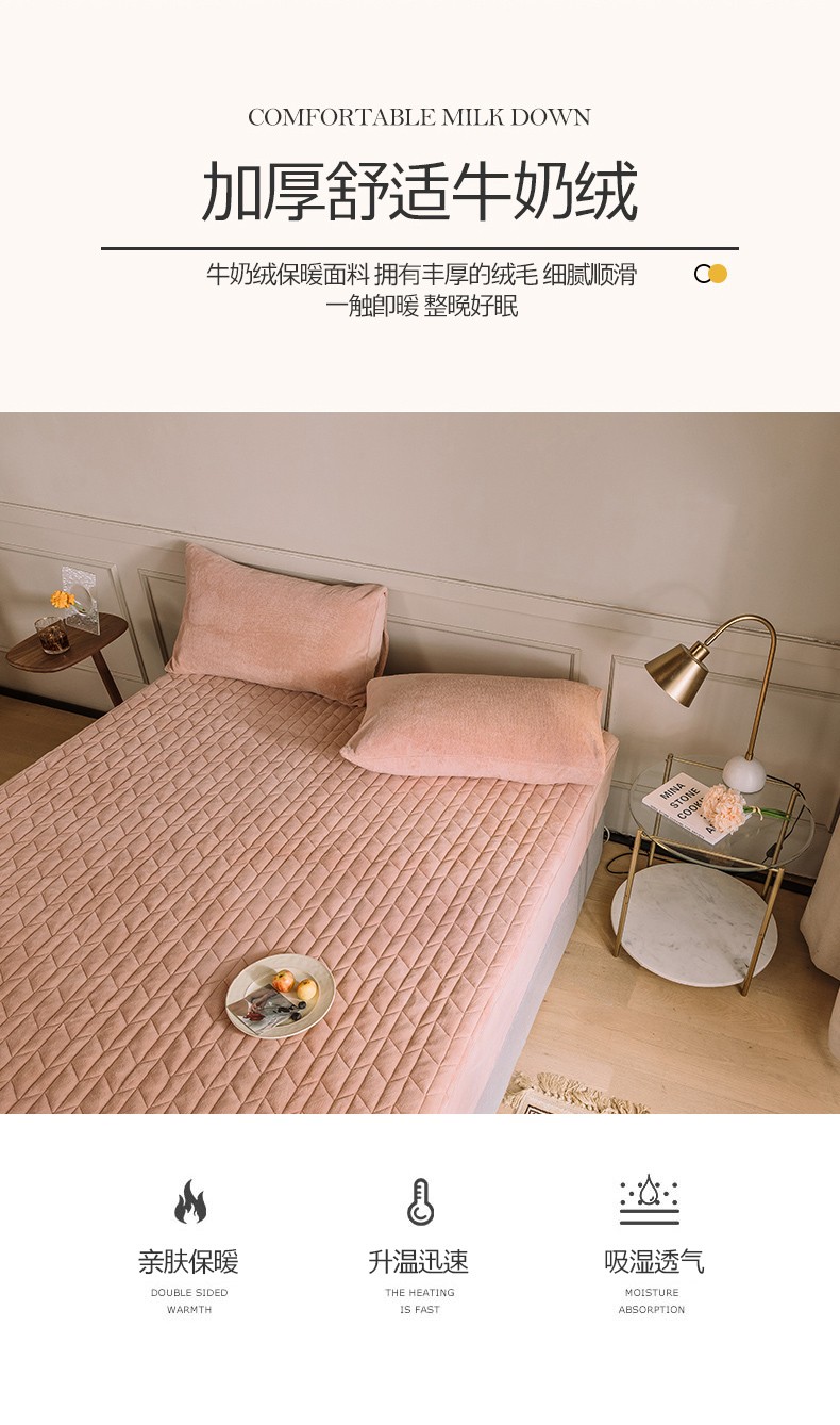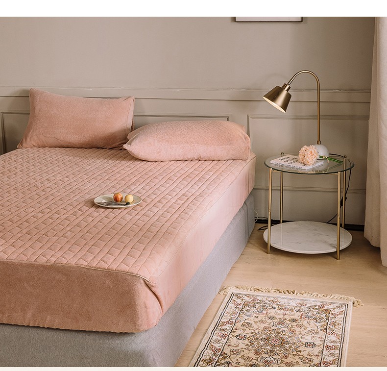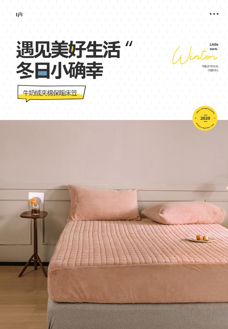 法芙娜家纺 秋冬加厚牛奶绒夹棉床笠 吸湿排汗保暖 樱花粉