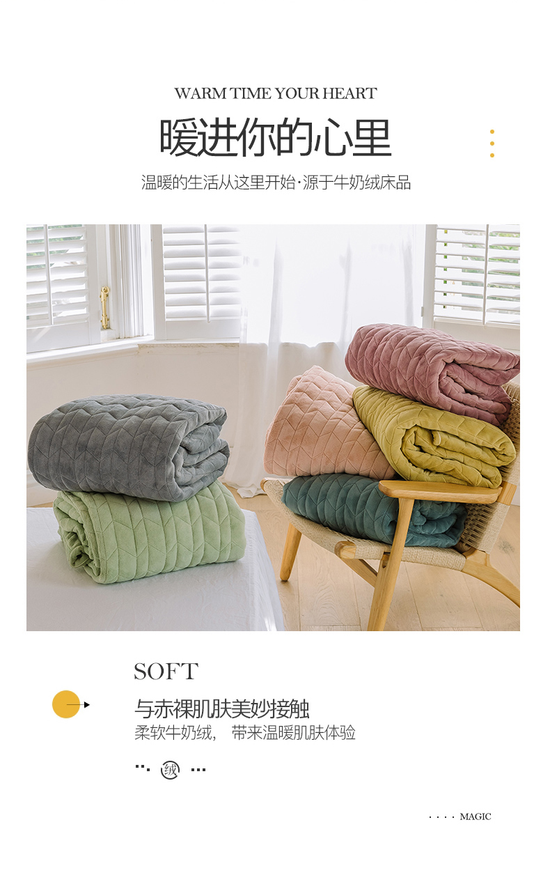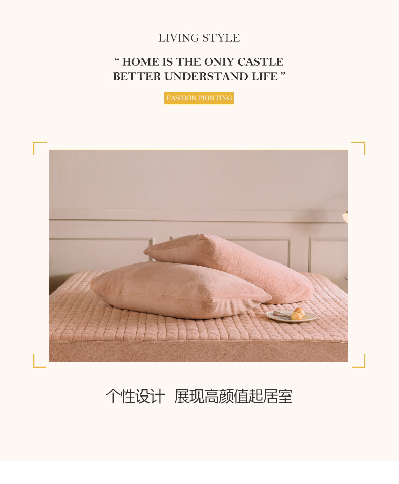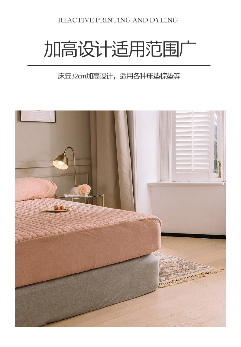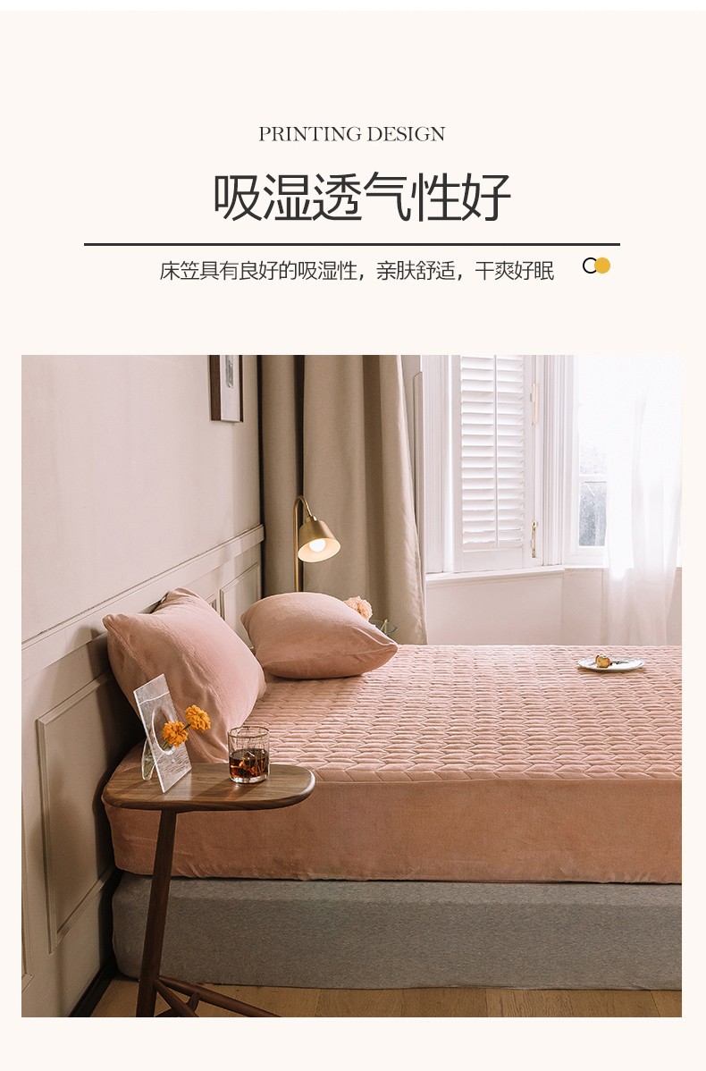 法芙娜家纺 秋冬加厚牛奶绒夹棉床笠 吸湿排汗保暖 樱花粉