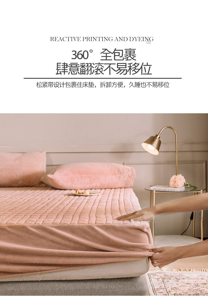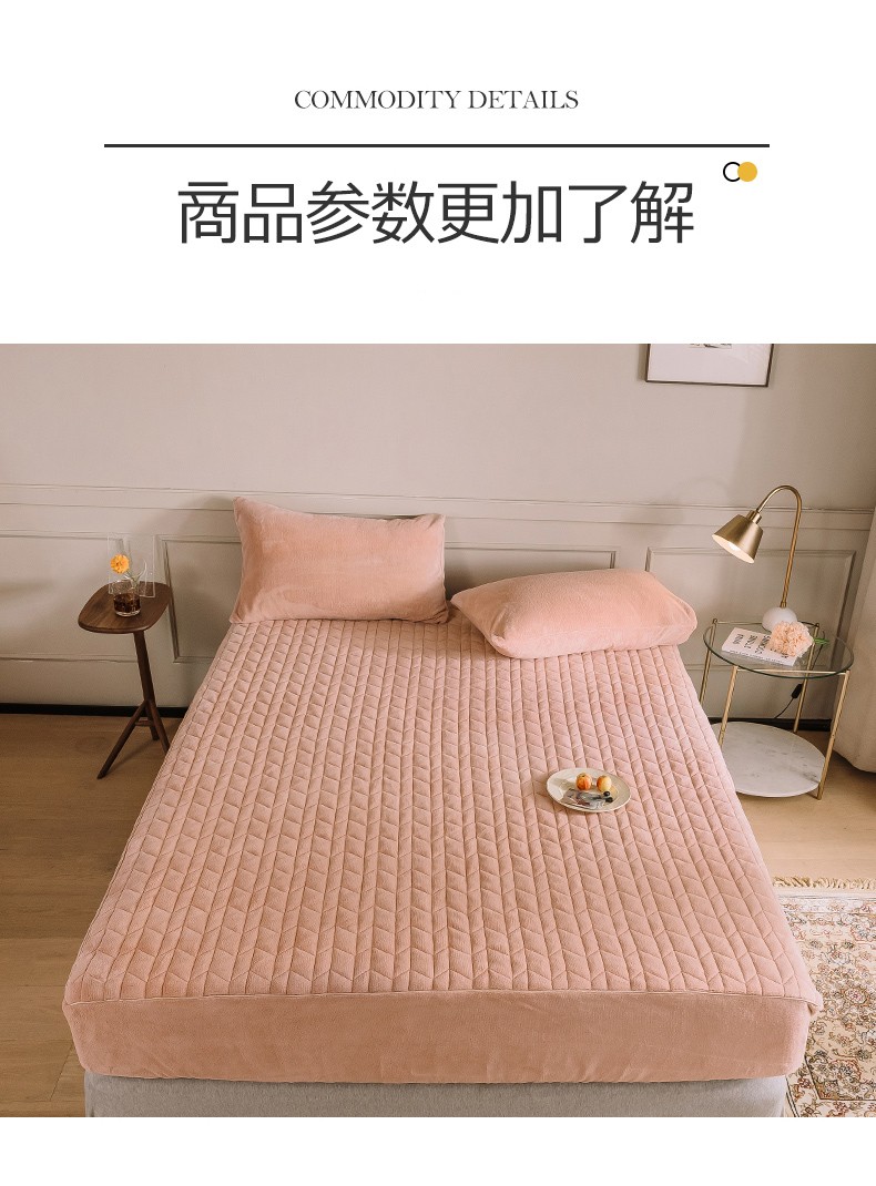 商品名称:法芙娜家纺 秋冬加厚牛奶绒夹棉床笠 吸湿排汗保暖 樱花粉
