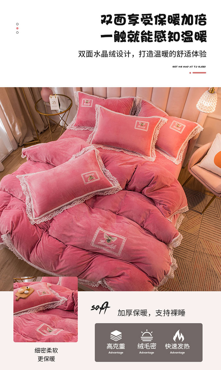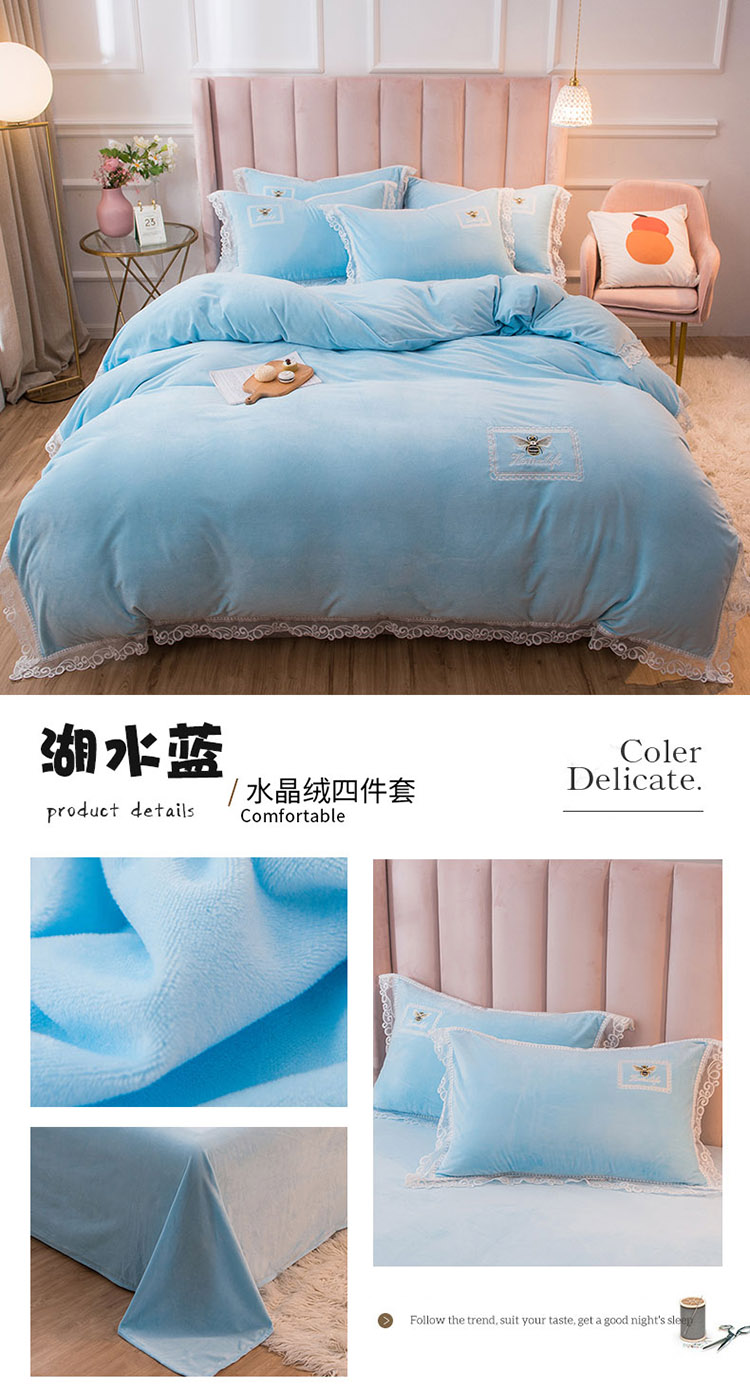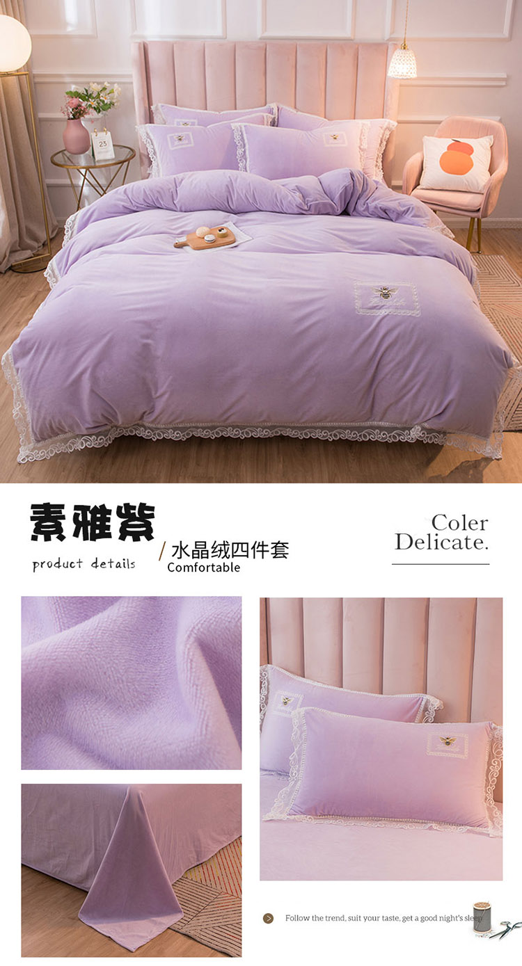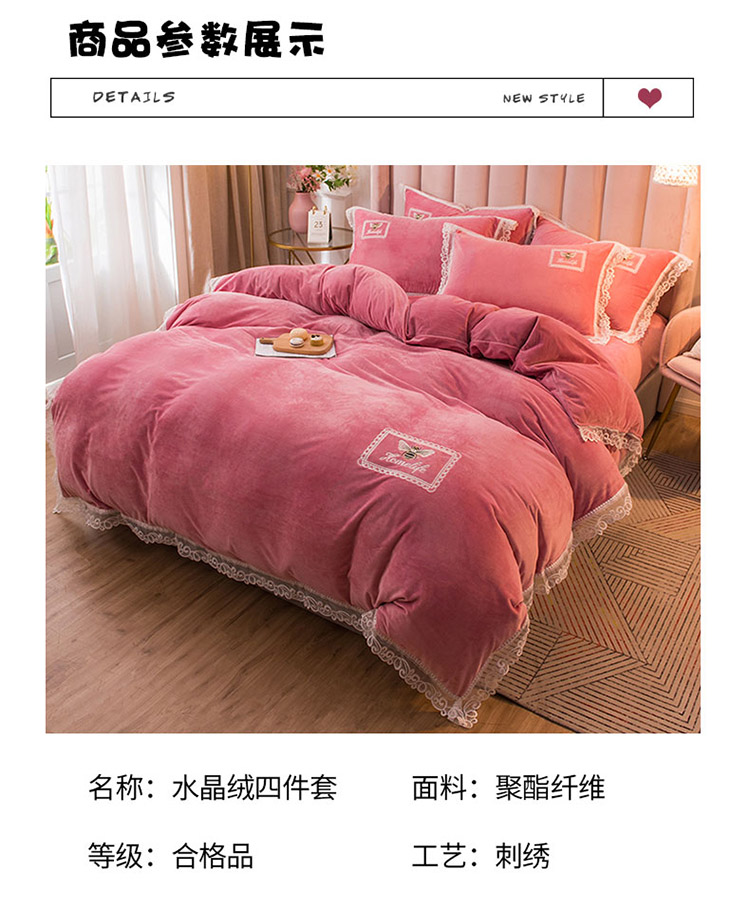 (总)米奈 新款高克重水晶绒蕾丝系列牛奶绒法莱绒四件套-丽娜