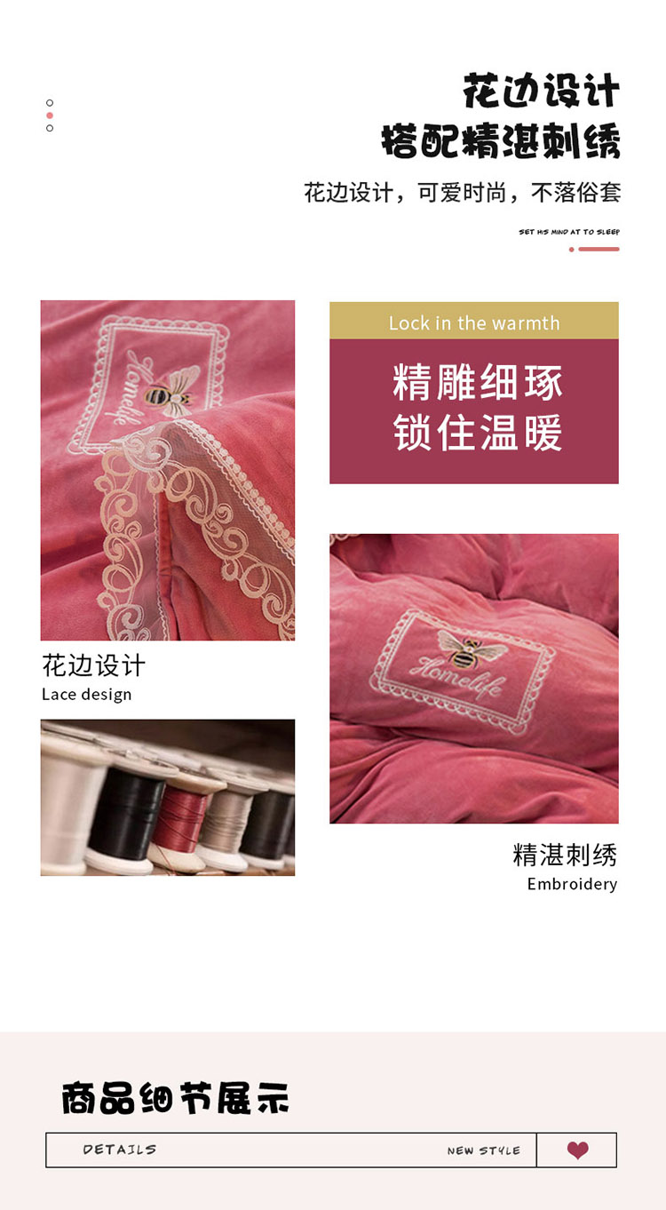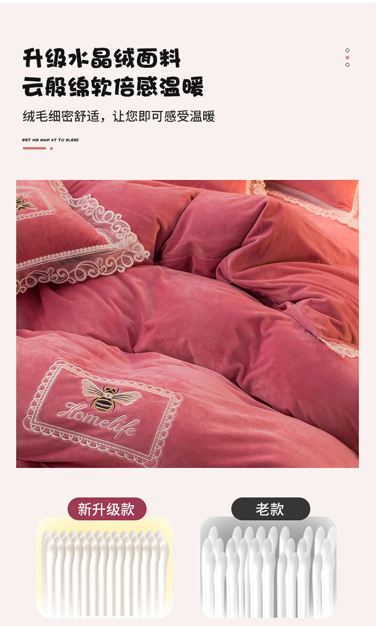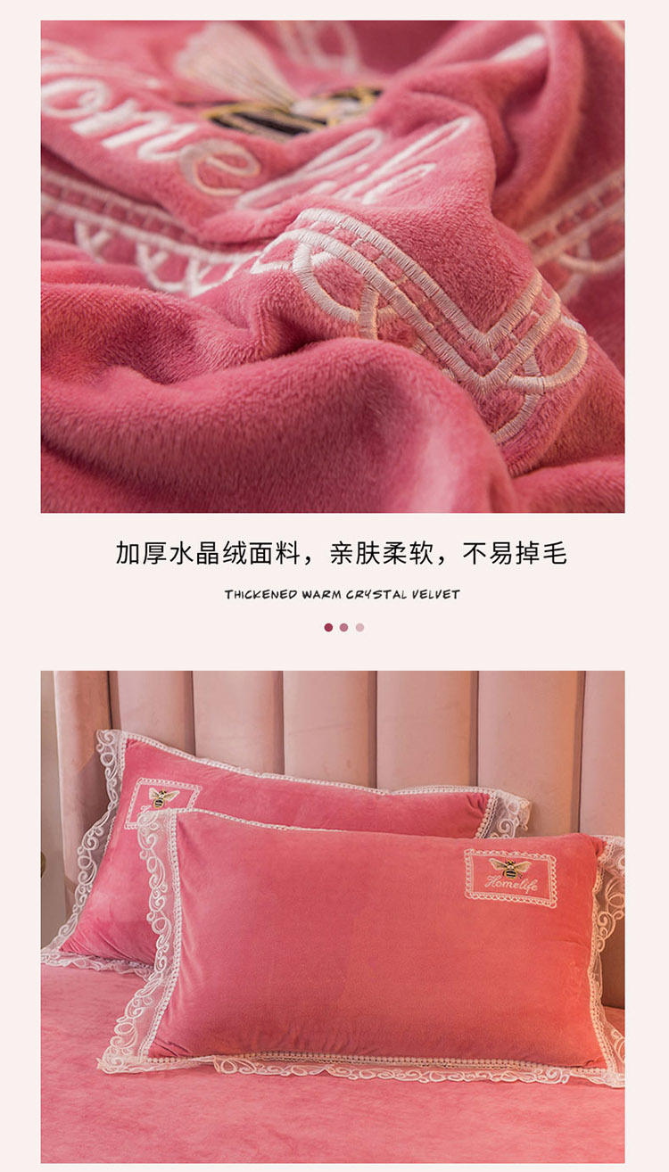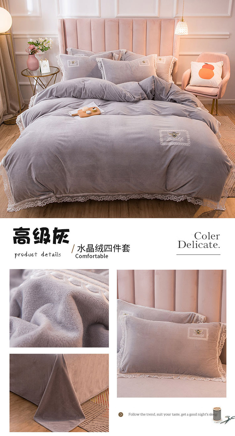 (总)米奈 新款高克重水晶绒蕾丝系列牛奶绒法莱绒四件套-丽娜