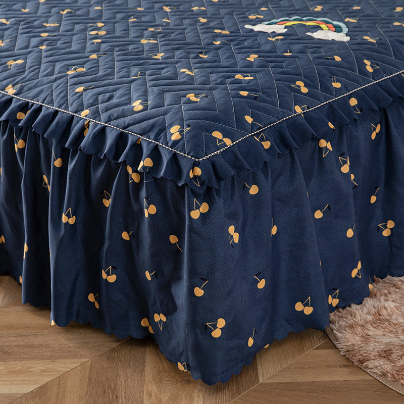 纽缦 2020新款加厚磨毛单件夹棉床裙 彩虹小镇