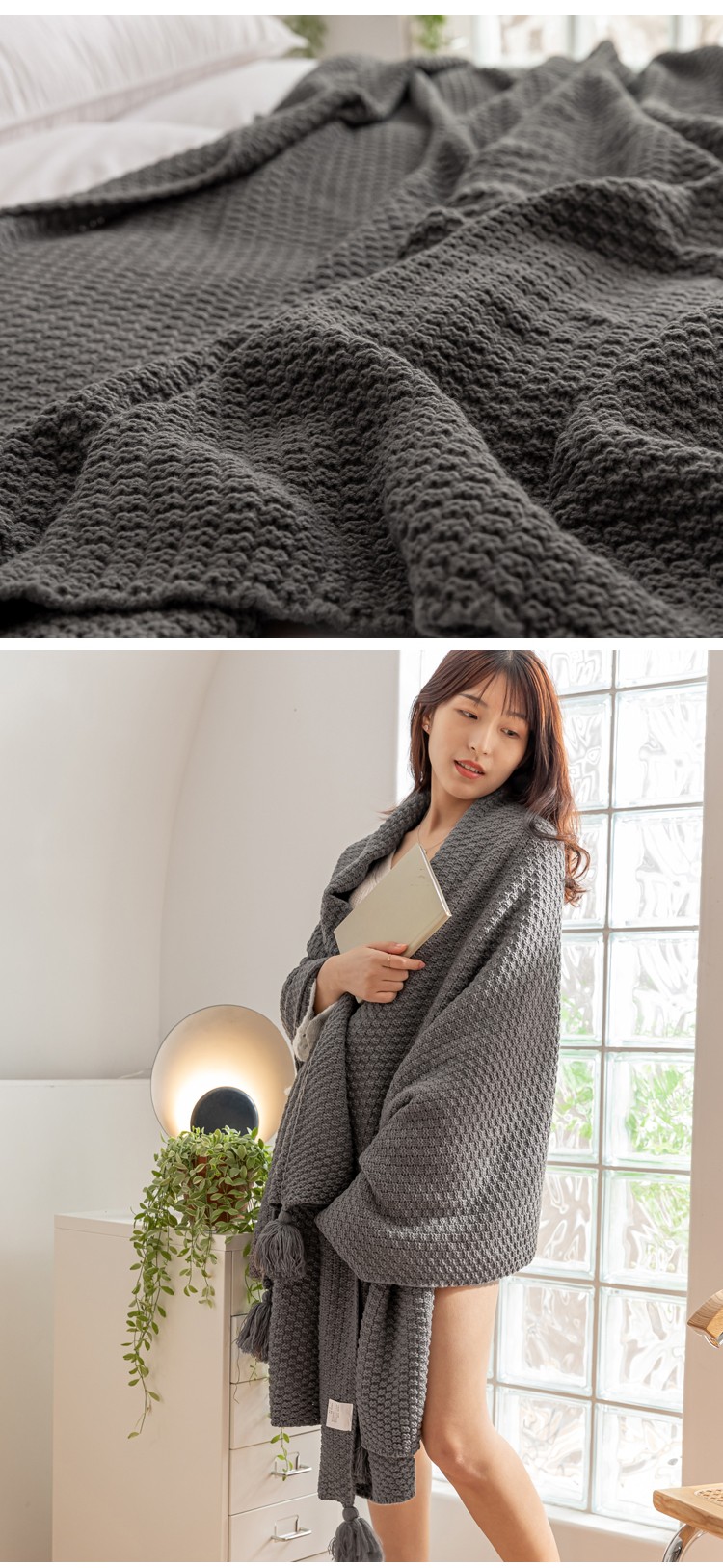 商品名称:北欧风披肩流苏针织毯沙发毯午睡盖毯空调被休闲毯小毛毯子 鹅黄色