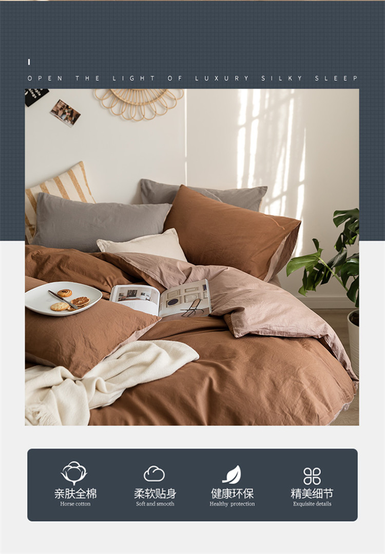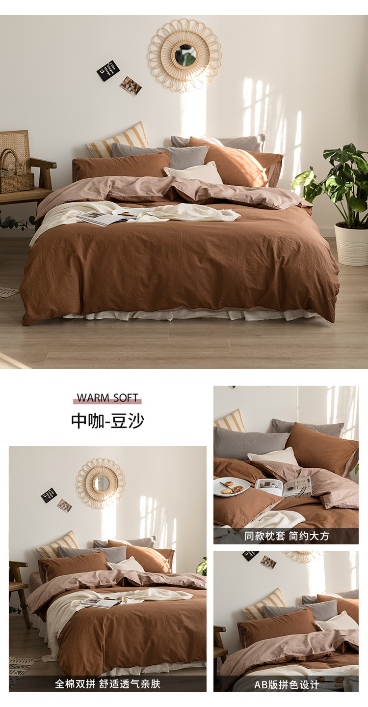 当前位置: 91家纺网 > 商品网购 > 床品套件 > 四件套 > 全棉普通四件套 > 全棉40s加厚双拼四件套中咖豆沙