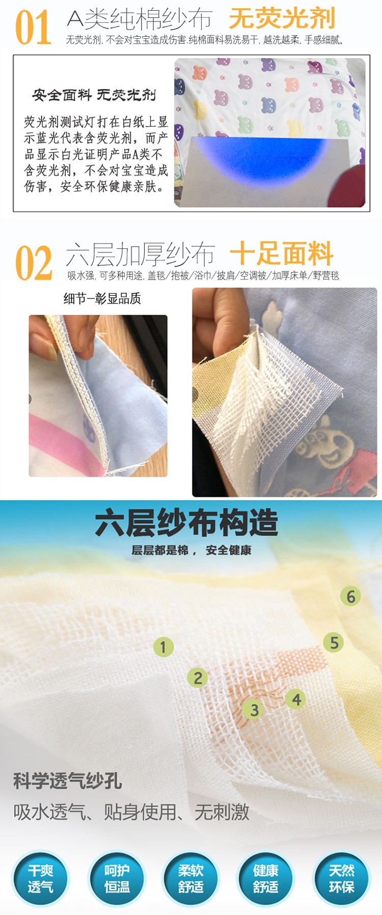 商品名称:朴尔 2021新款经典六层纱布全棉毛巾被系列 熊头