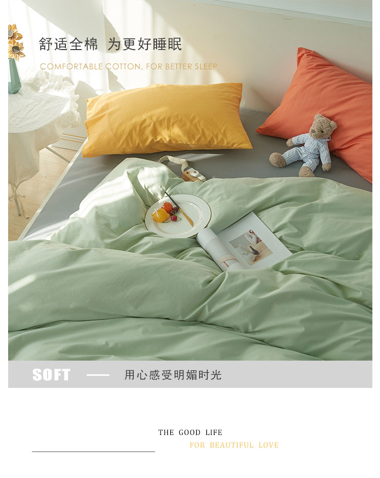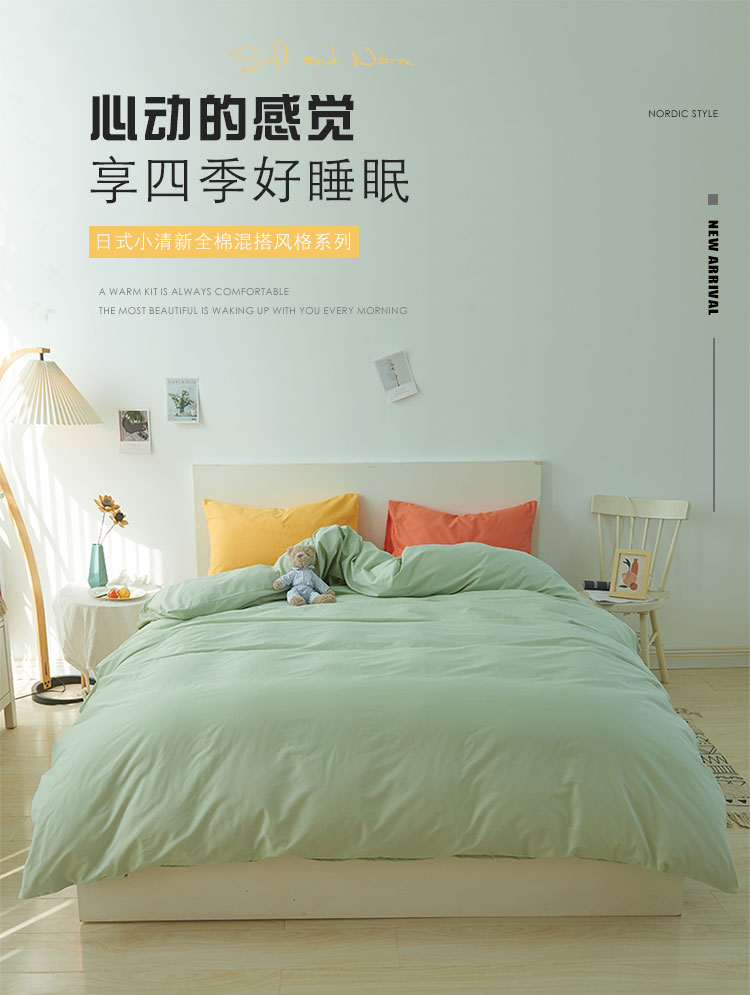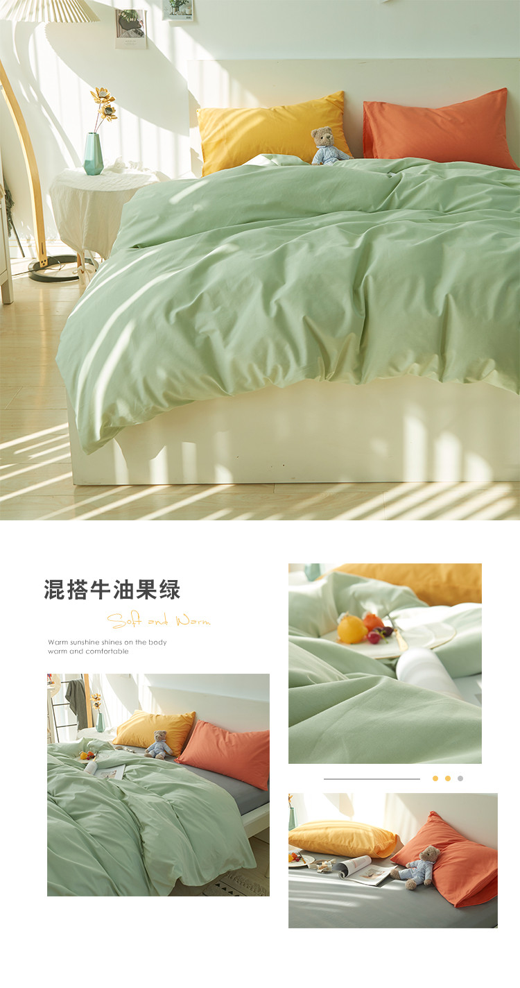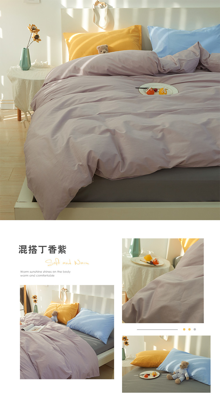 总-纯色混拼全棉四件套单被套床单枕套床笠套件1.5纯棉床品