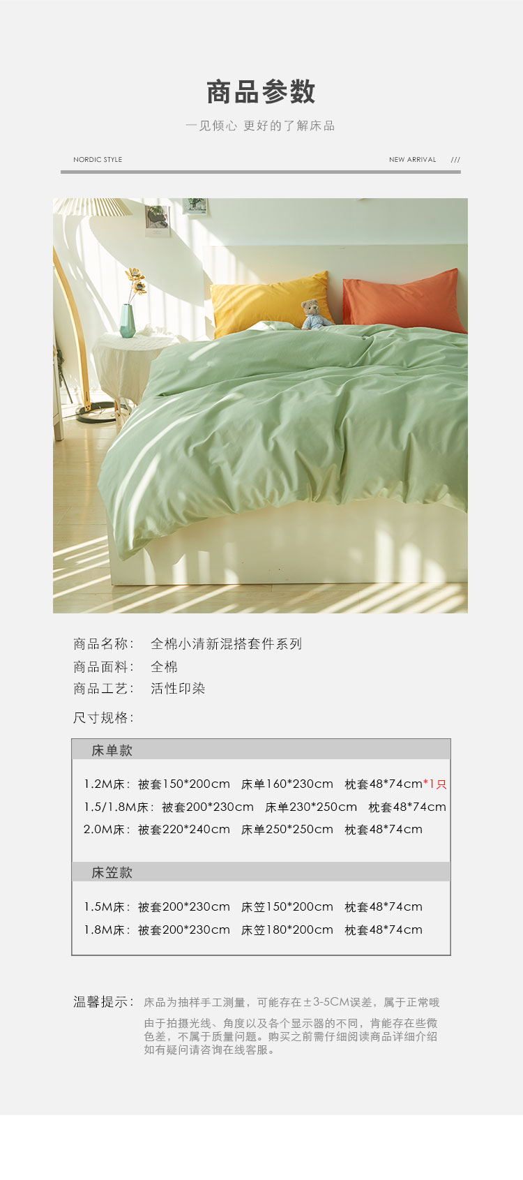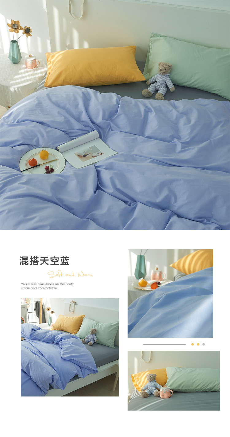 商品名称:总-纯色混拼全棉四件套单被套床单枕套床笠套件1.5纯棉床品